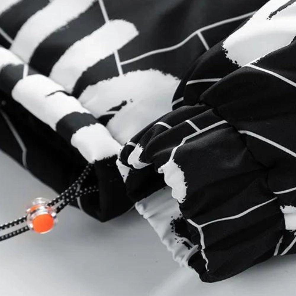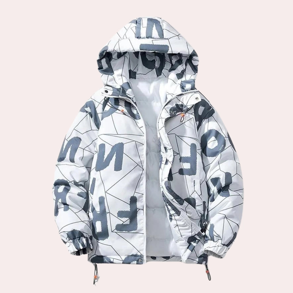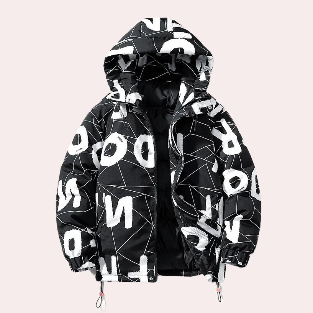 1 - Monochrome Geometric Print Jacket - High Neck Urban Winter Wear |