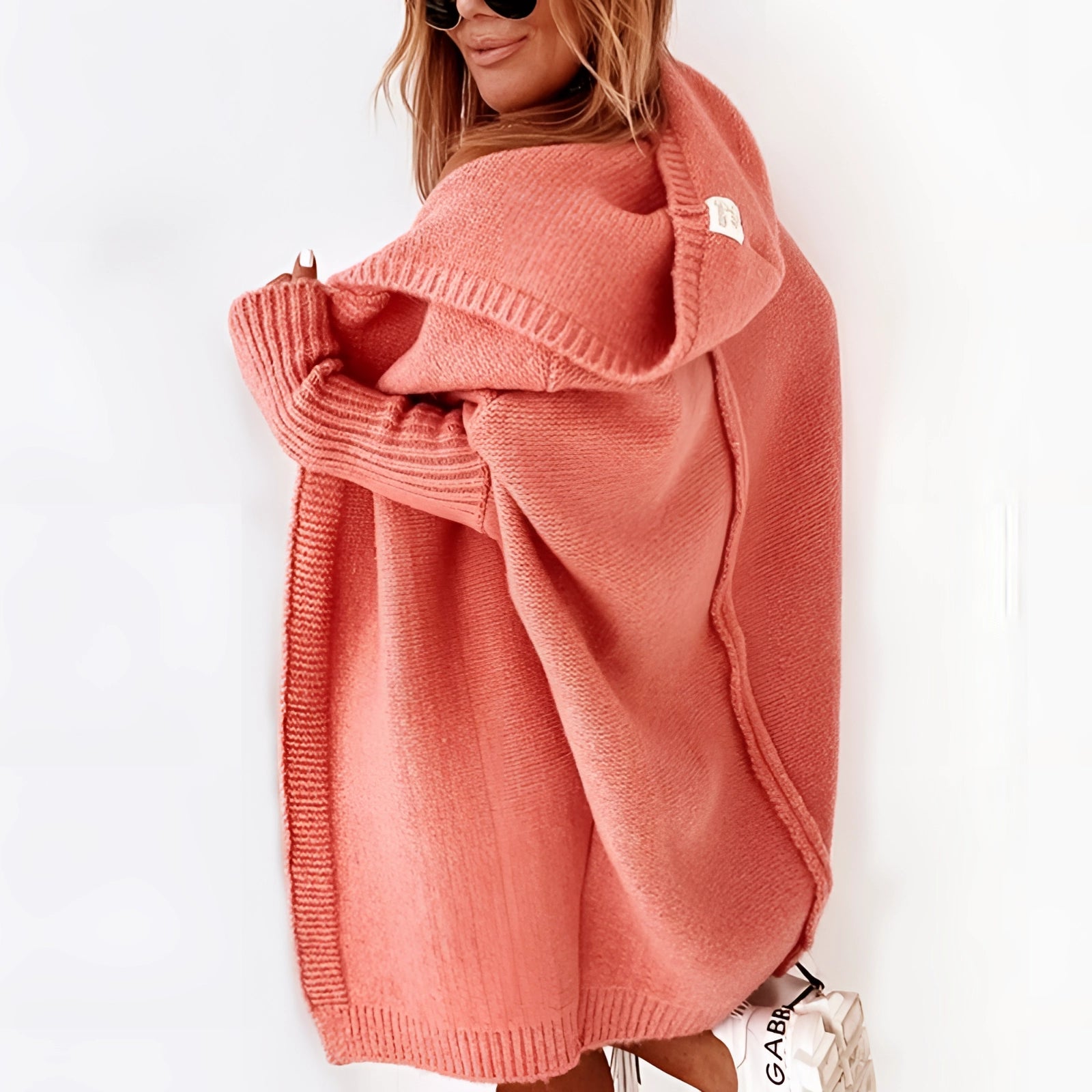 1 - Oversized Grey Hoodie Dress - Cozy Knit Sweater with Pockets