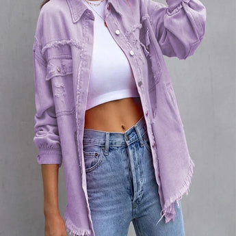 Chic Versatility: Our distressed denim jacket is perfect for any outfit, whether you’re enjoying a relaxed day with friends or attending a formal event, keeping you stylishly dressed.