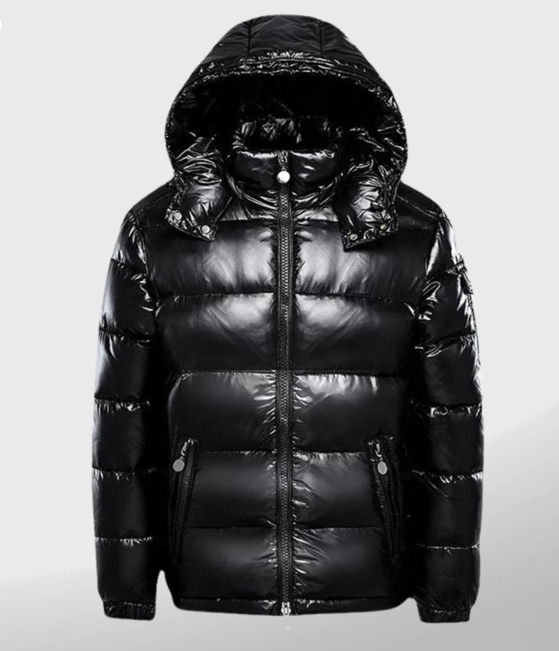 1 - Shiny Black Puffer Jacket - Glossy Metallic Insulated Coat |