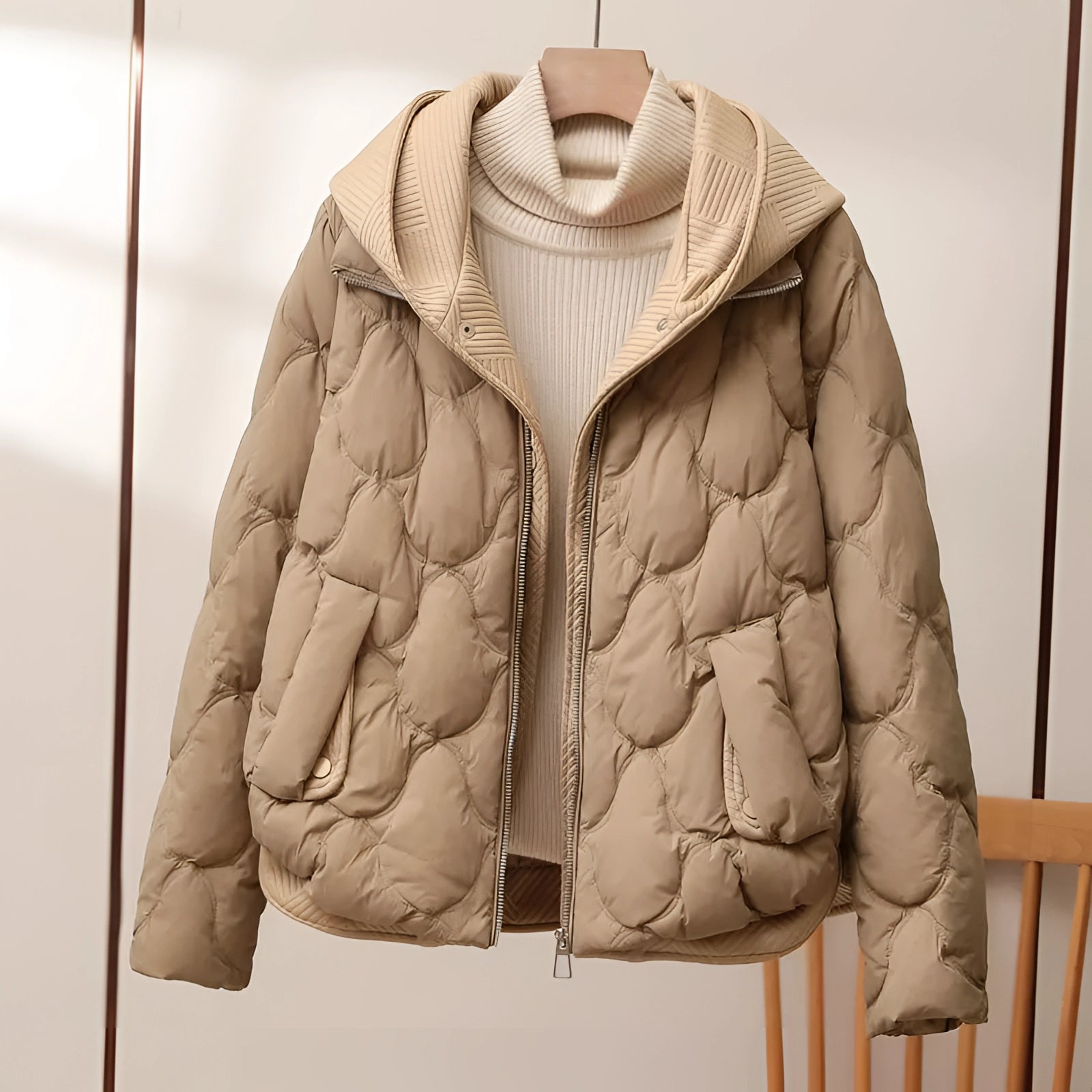 Stylish Beige Quilted Insulated Puffer Jacket with High Collar