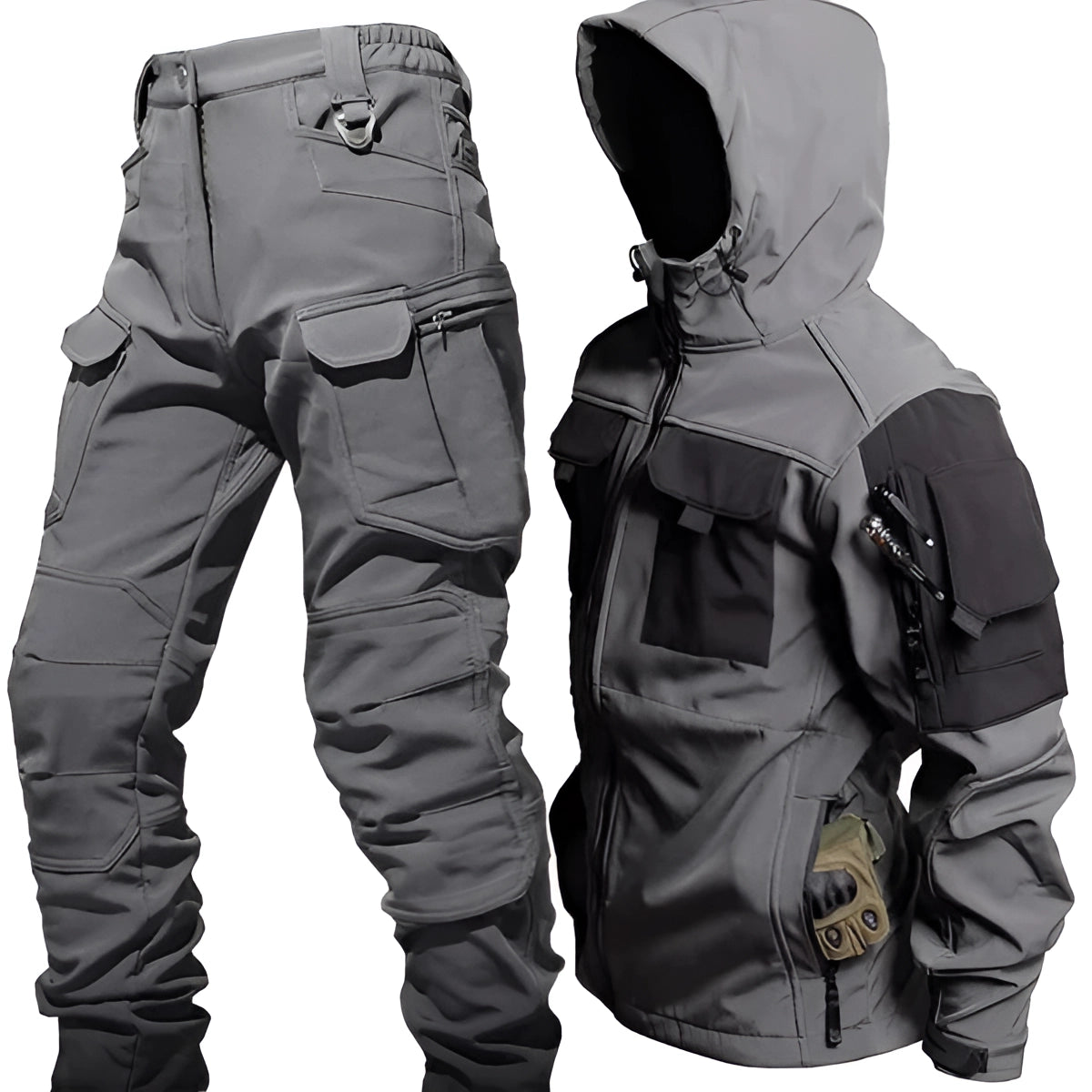 The Waterproof Military Tactical Jacket & Olive Green Pants Set is an essential outdoor gear for those who value both style and functionality. This high-quality tactical set is crafted from durable polyester, ensuring it is not only warm and cozy but also long-lasting. Whether you're braving the snow or strolling through the city, this outdoor set keeps you comfortably warm and well-protected against the elements. Its timeless design makes it a must-have garment for the colder months, offering comfort without sacrificing style, ensuring you look good even when the temperature drops. The set is available in three colors: dark green, gray, and black, and comes in a range of sizes from M to 3XL, catering to a variety of preferences and body types. One of the standout features of this product is its durable and functional material, which is resistant to various conditions, making it perfect for outdoor activities, work, or casual use. The design includes multiple pockets for convenient storage and a practical fit, enhancing its utility. Additionally, the set is breathable and lightweight, providing optimal comfort during movement. The polyester and cotton blend materials contribute to its comfortable and functional fit, making it suitable for male users. This versatile set is ideal for both daily use and adventurous activities, combining modern style with practicality.
