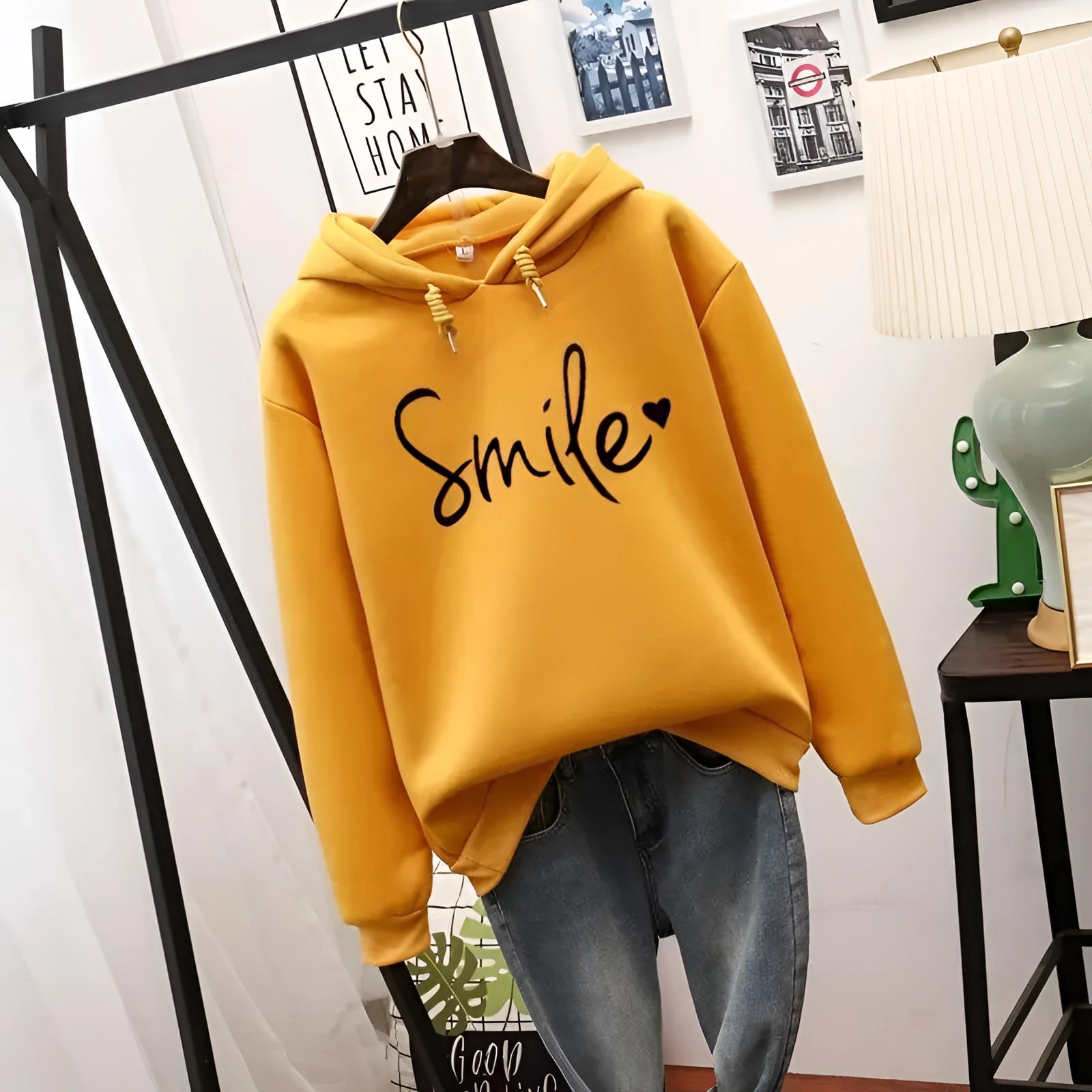 The Women's Peach Smile Hoodie is a delightful addition to any wardrobe, combining comfort with a heartwarming message. This cozy heart design pullover sweatshirt is available in a variety of colors including Beige, Pink, Orange, Yellow, and Green, and comes in sizes ranging from S to 2XL, ensuring a perfect fit for everyone. The hoodie is crafted from soft, high-quality material that feels gentle against the skin, providing optimal comfort for all-day wear. Its cheerful design is not only a fashion statement but also spreads positive vibes, making it ideal for relaxed days or as a standout piece in your casual wardrobe. Whether you're lounging at home or out and about, the Smile Hoodie brings a touch of happiness to your everyday life. The three main unique selling points of this hoodie are its joyful design that promotes good mood, the soft material that ensures high comfort, and its versatility, making it perfect for both leisure and relaxation while being easy to pair with other outfits. This hoodie is a must-have for anyone looking to add a bit of joy and comfort to their clothing collection.