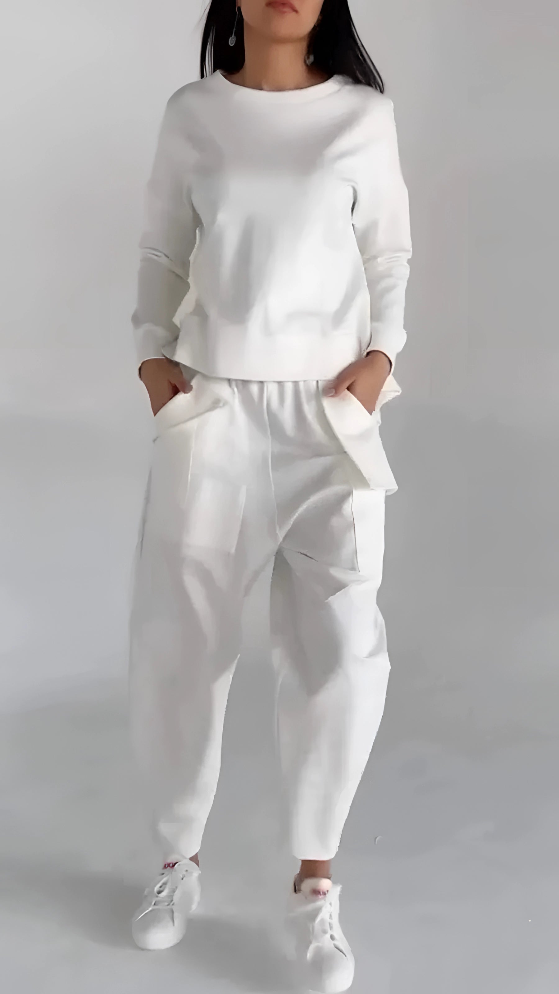 Women's White Lounge Set - Minimalist Sweatshirt & Relaxed Joggers