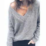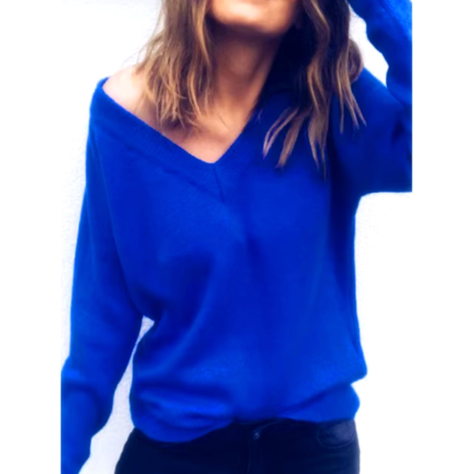 The Backless Royal Blue V-Neck Sweater is a standout piece in women's fall fashion, offering a blend of style and comfort that is perfect for the transitional seasons of spring and autumn. Crafted from a soft and breathable knit, this sweater ensures a comfortable and elegant fit. Its wide neckline and flattering V-neck design, coupled with long sleeves, create a relaxed yet chic look that is both versatile and stylish. Available in a range of colors including Black, Pink, Blue, Dark Pink, and Light Gray, this sweater can easily be paired with a variety of outfits, making it a staple in any wardrobe. The loose fit design not only provides freedom of movement but also ensures all-day comfort, making it ideal for casual outings or cozy days at home. Offered in sizes from S to XXL, it caters to a wide range of body types, ensuring that everyone can enjoy its stylish appeal. Additionally, the sweater comes with the added benefit of free shipping, making it an even more attractive choice for fashion-conscious individuals looking to update their fall wardrobe with a piece that combines both style and practicality.