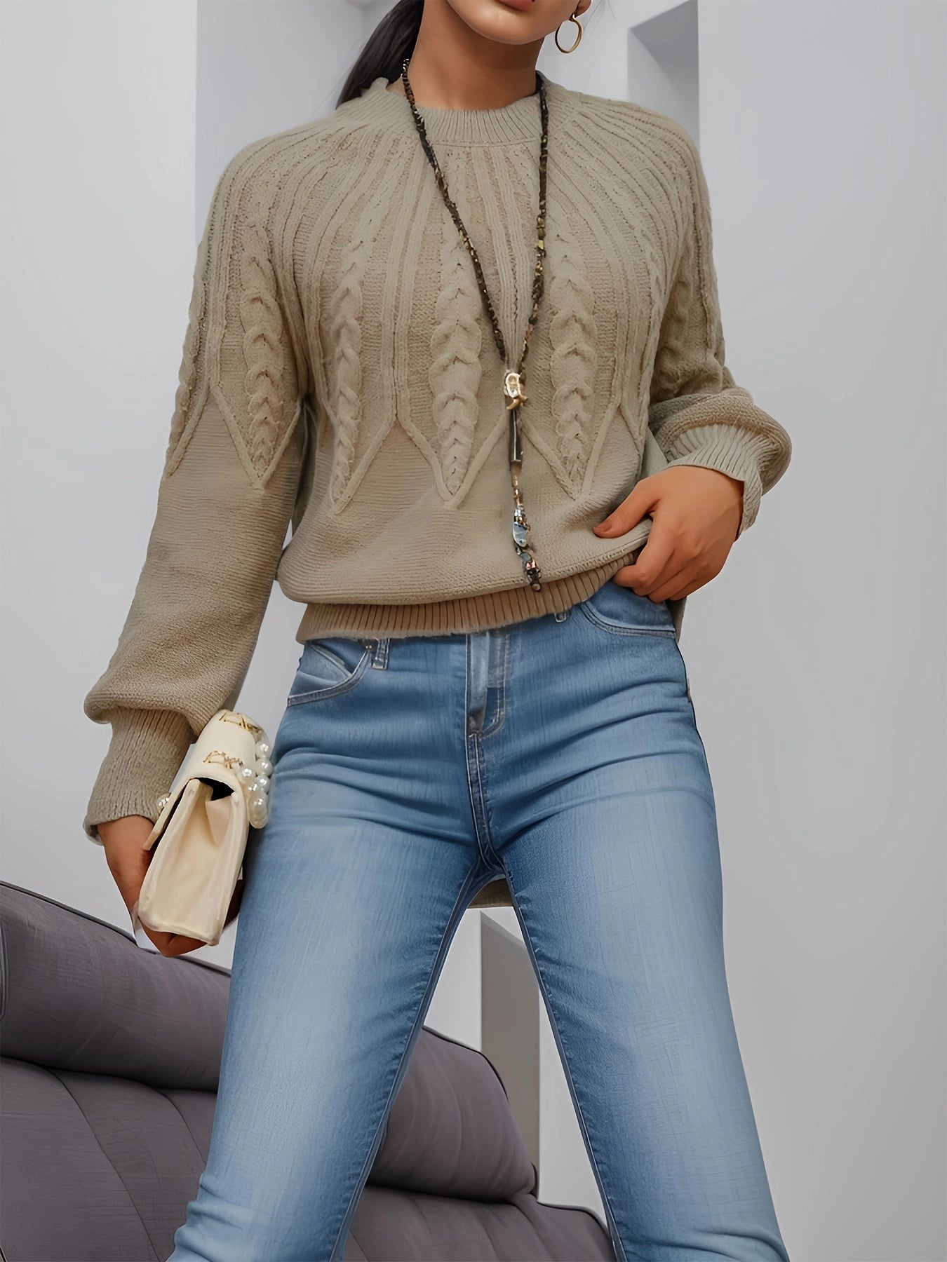 1 - Beige Cable Knit Sweater - Women's Cozy Fall Fashion Pullover |