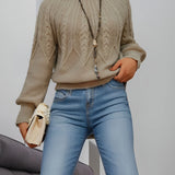 The Beige Cable Knit Sweater for women, also known as the Zamina Strickpullover, is a perfect blend of style and comfort, making it an essential addition to your fall wardrobe. This cozy pullover features elegant lantern sleeves that add a stylish flair, making it suitable for any occasion, whether casual or formal. The classic round neckline complements the overall design, providing a timeless appeal. Crafted from soft knit fabric, this sweater ensures a comfortable wearing experience, offering warmth during cooler temperatures. Its loose fit allows for ease of movement, enhancing comfort throughout the day. Available in a variety of colors, including Style 1 through Style 6, and sizes ranging from S to L, this sweater caters to diverse fashion preferences and body types. The versatile cut of the Zamina Strickpullover makes it easy to pair with different outfits, whether you're aiming for a laid-back look or dressing up for a more elegant event. The combination of its unique design elements and practical features makes this sweater a must-have for anyone looking to stay stylish and warm during the fall season. With its elegant lantern sleeves, comfortable knit fabric, and versatile styling options, the Beige Cable Knit Sweater is a standout piece that effortlessly elevates your fashion game.