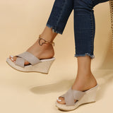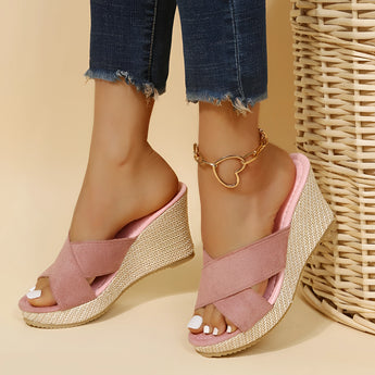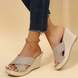 1 - Black Cross Strap Wedge Sandals - Women's Chic Platform Heels |
