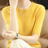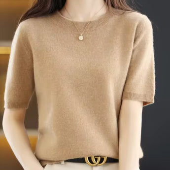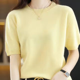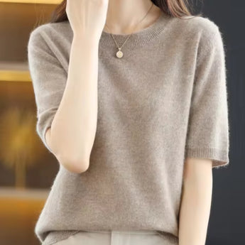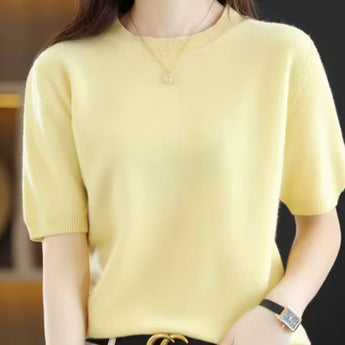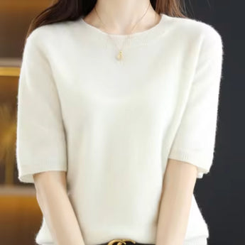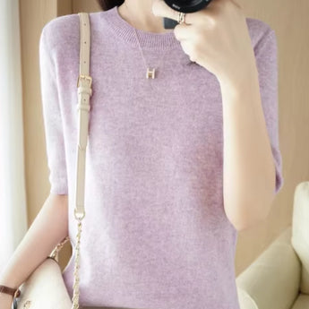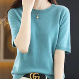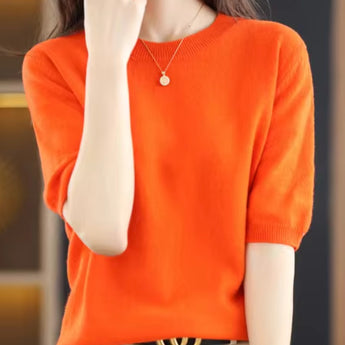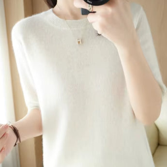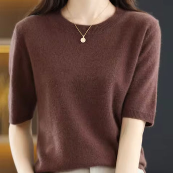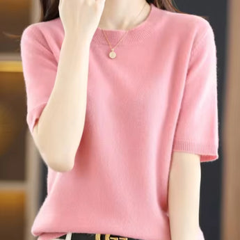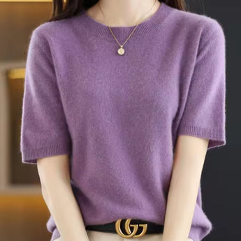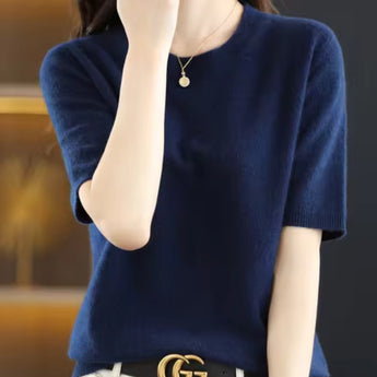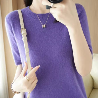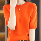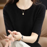 The Black Wool Cashmere Sweater for women is a modern chic fashion staple that combines luxurious comfort with a perfect blend of softness and elegance. Crafted from a high-quality mix of wool and cashmere, this sweater offers lightweight warmth with a touch of sophistication. Available in a wide range of colors including Black, Green, Blue, Brown, Beige, Pink, Purple, Yellow, Persimmon, Violet, Orange, Lavender, Navy Blue, Light Blue, Light Yellow, White, and Camel, it caters to diverse style preferences. The classic O-neck and short sleeves make it a versatile piece that can be worn alone or layered under jackets. Its tailored fit accentuates your figure while creating an elegant look, making it a perfect choice for dry, cool days when you want to update your casual style. Available in sizes M, L, XL, and XXL, this sweater ensures a comfortable fit for various body types. The soft and cozy texture of the sweater makes it an ideal addition to your wardrobe, offering both style and comfort. Additionally, the product comes with free shipping, enhancing its appeal as a must-have fashion item.