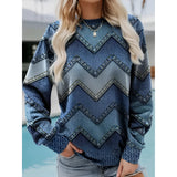 1 - Blue Chevron Women's Sweater | Cozy Knit Pullover Fashion |