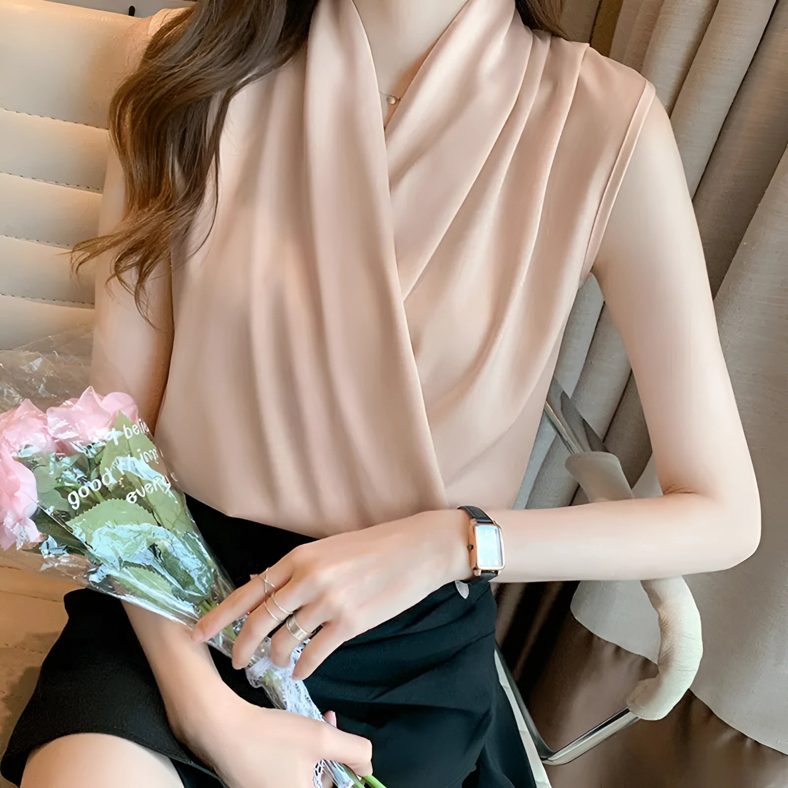 The Bright Green Cowl Neck Sleeveless Blouse for Women is a stylish and versatile addition to any wardrobe, perfect for warm days when you want to look both elegant and comfortable. This blouse features a sophisticated wrap design with a deep surplice neckline that beautifully accentuates your figure, adding a feminine touch to your ensemble. Made from a lightweight and breathable fabric, it ensures a pleasant wearing experience, making it ideal for summer. Whether you're heading to the office or enjoying a casual outing, the Emilia Sleeveless Wrap Blouse is always a great choice. Available in a variety of colors including White, Green, Apricot, and Black, and sizes ranging from S to 2XL, this blouse offers options to suit different preferences and body types. The elegant wrap design not only highlights your figure but also adds a refined touch to any look. Its lightweight and breathable nature makes it perfect for hot summer days, providing both comfort and style. Additionally, its versatility allows it to be worn effortlessly in both professional and casual settings, making it a must-have piece in your wardrobe.