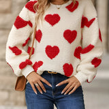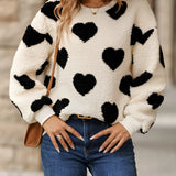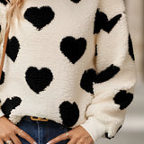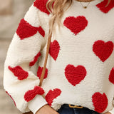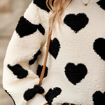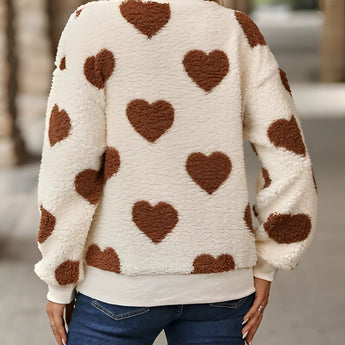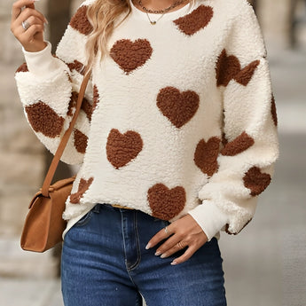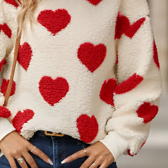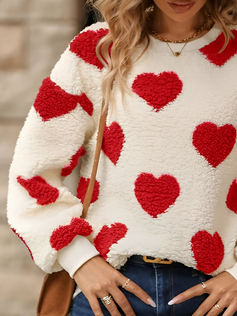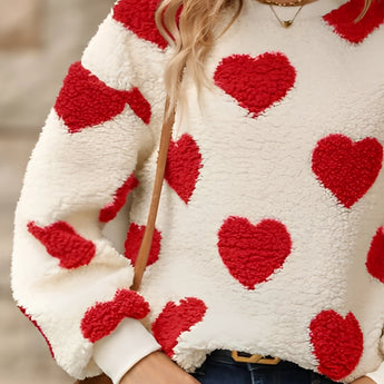 Cozy Women's Fluffy Heart Pullover - Winter Sherpa Sweater