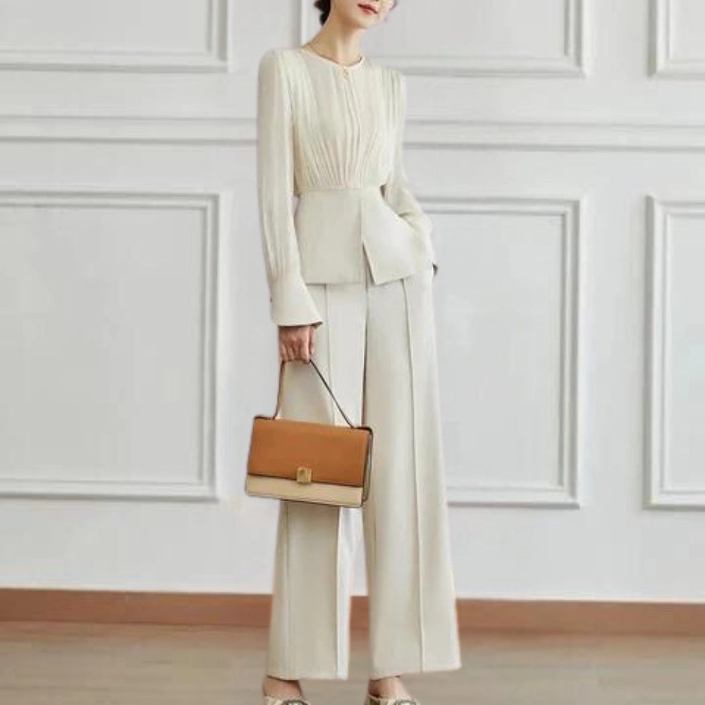 1 - Elegant Women's High-Waist Trouser Suit & Pleated Blouse Set |