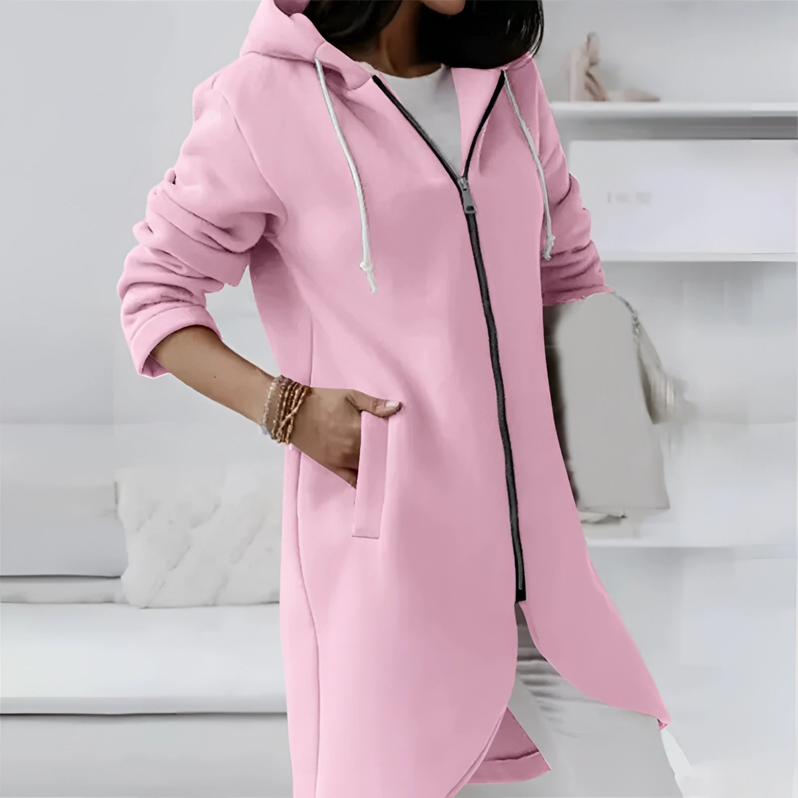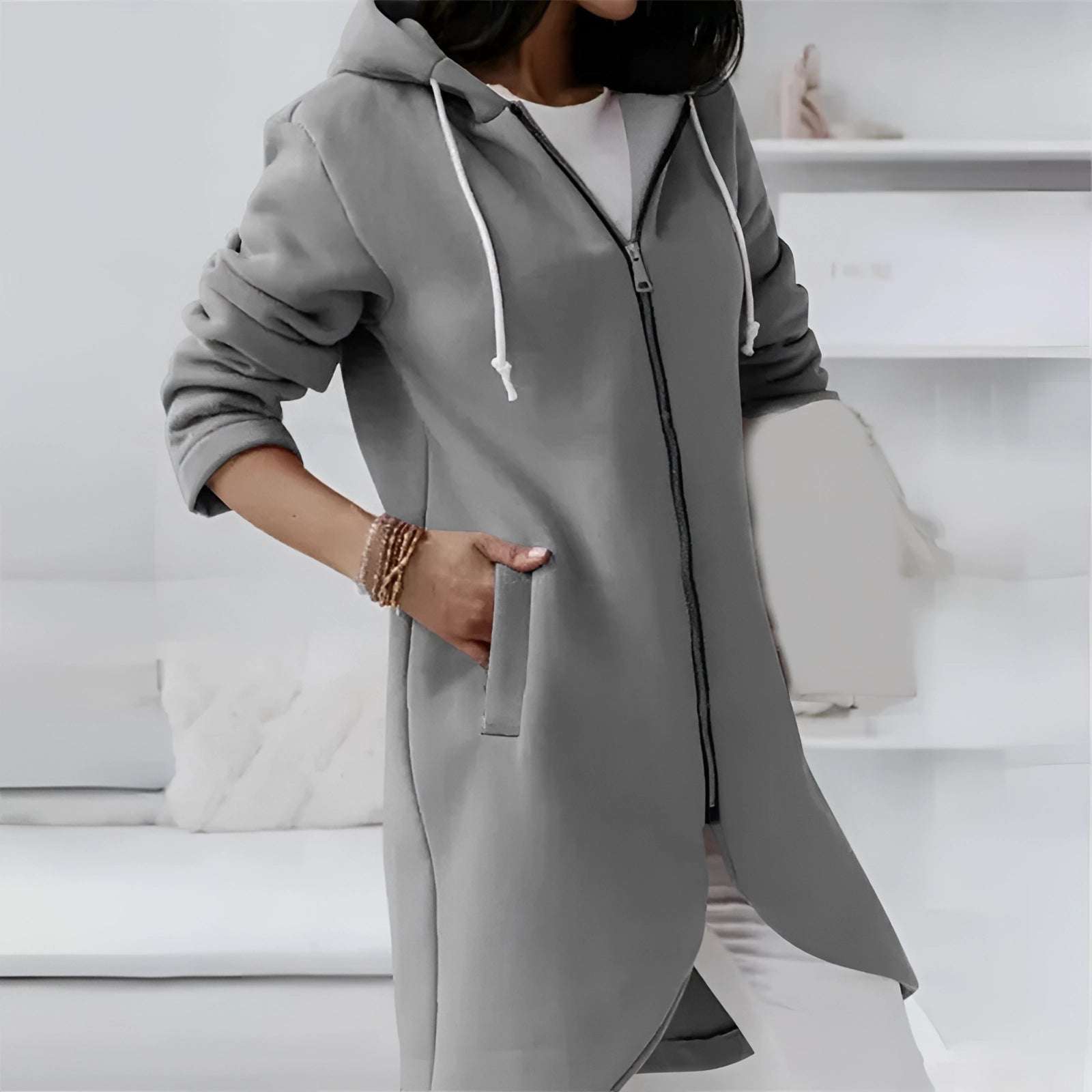 Elegant Women's Long Hooded Cardigan with Asymmetrical Zipper