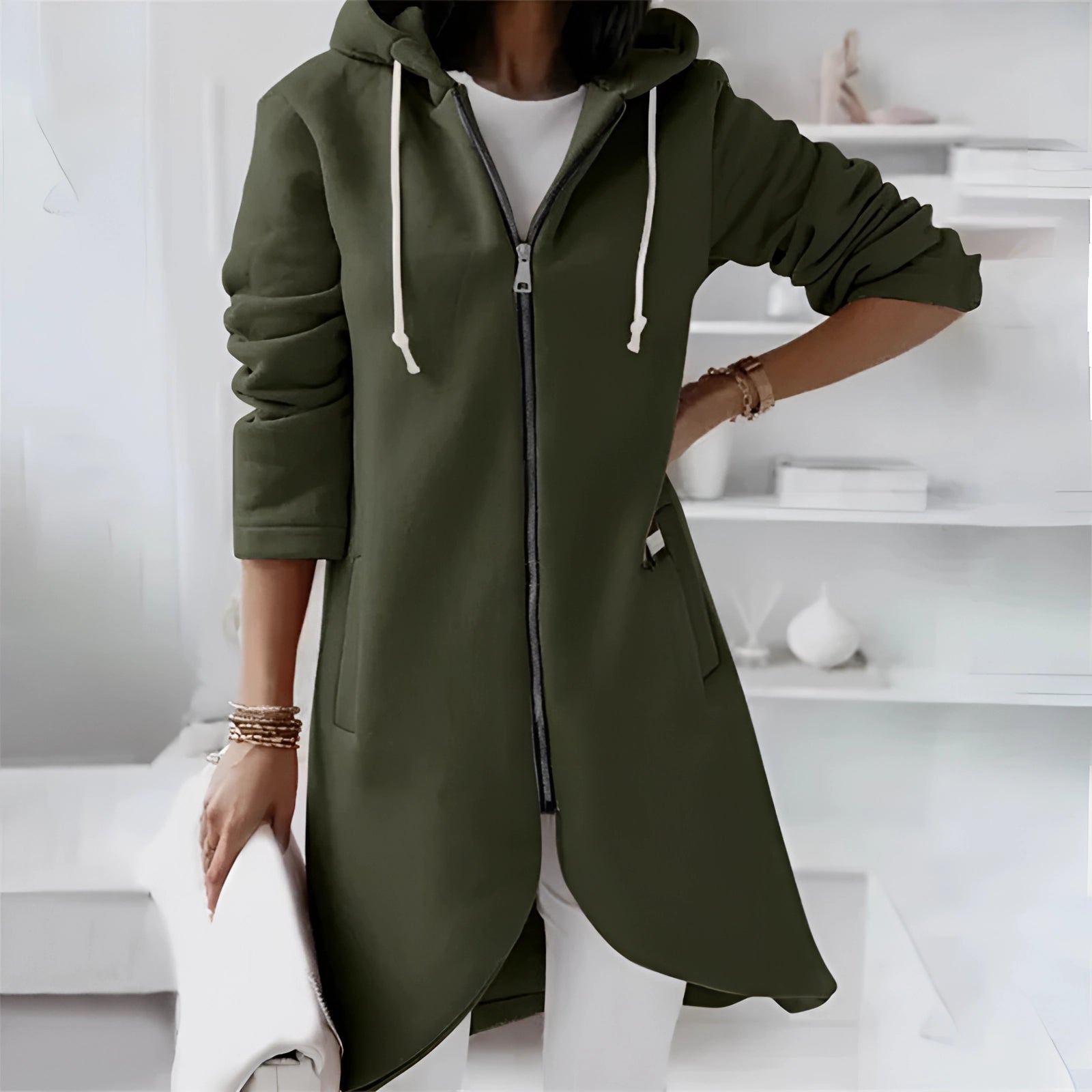 1 - Elegant Women's Long Hooded Cardigan with Asymmetrical Zipper