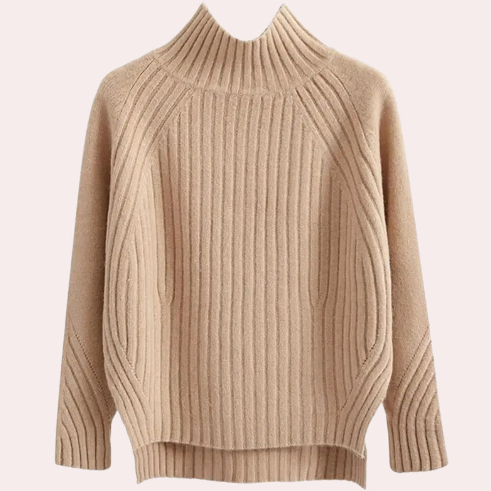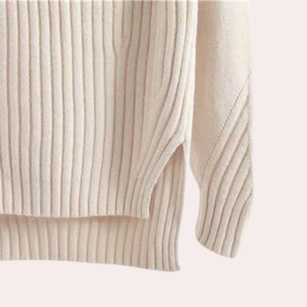 Elegant Women's Ribbed Mock Neck Sweater - Cream Turtleneck Knit
