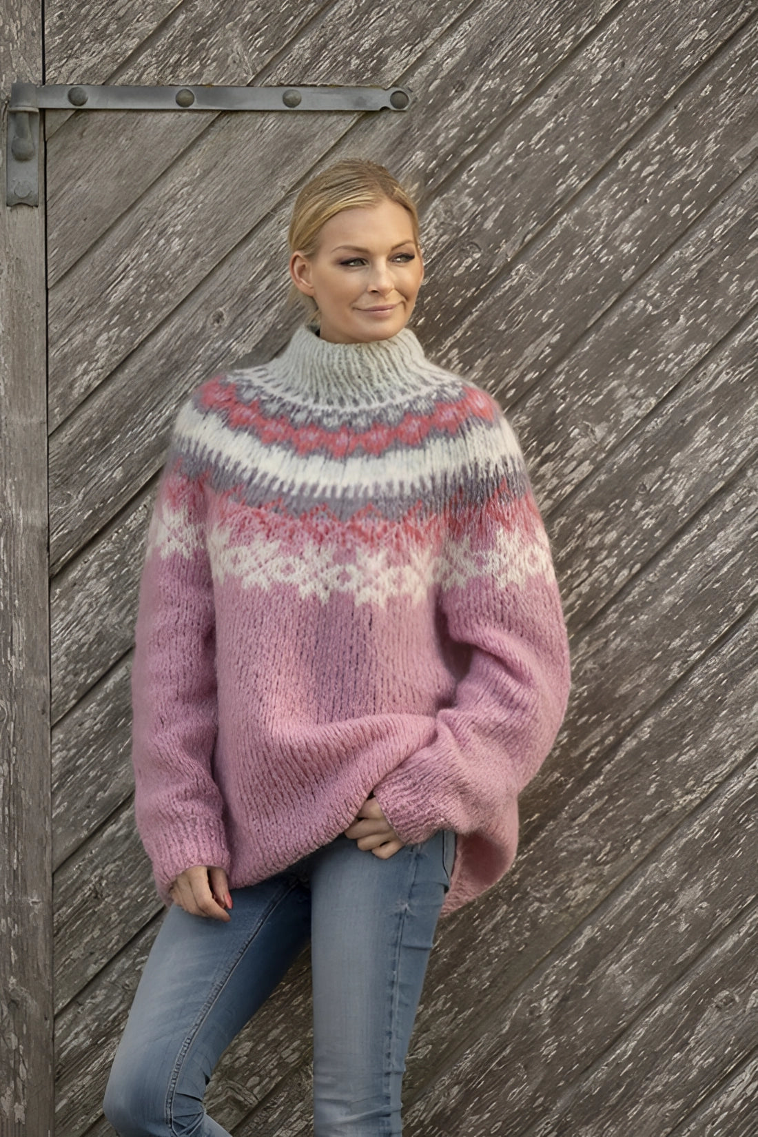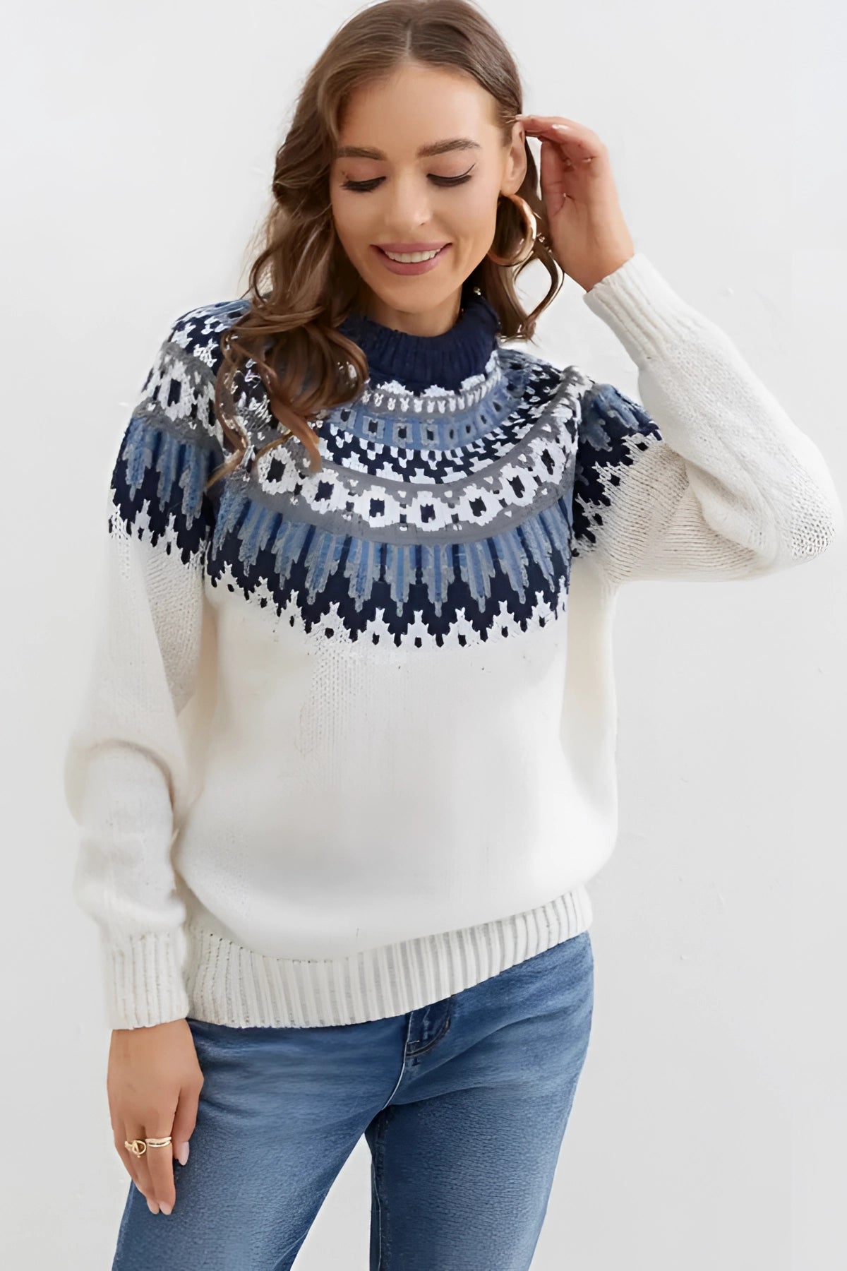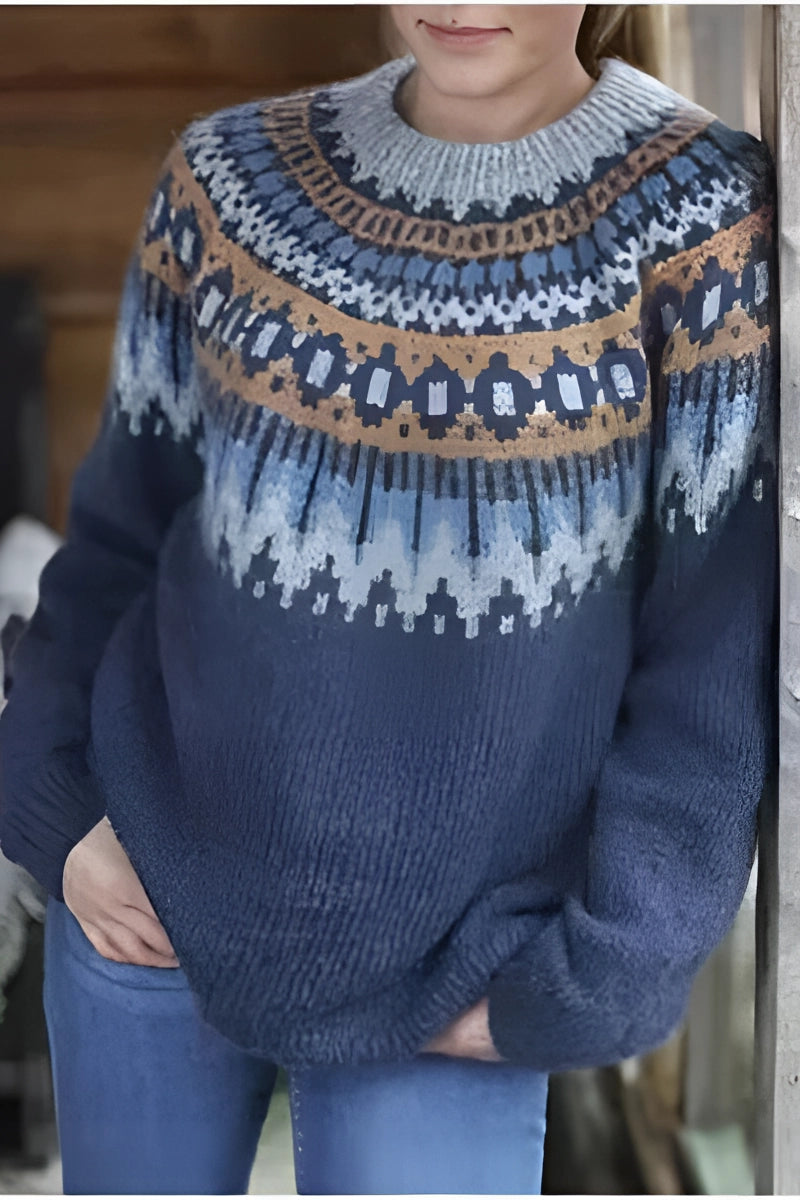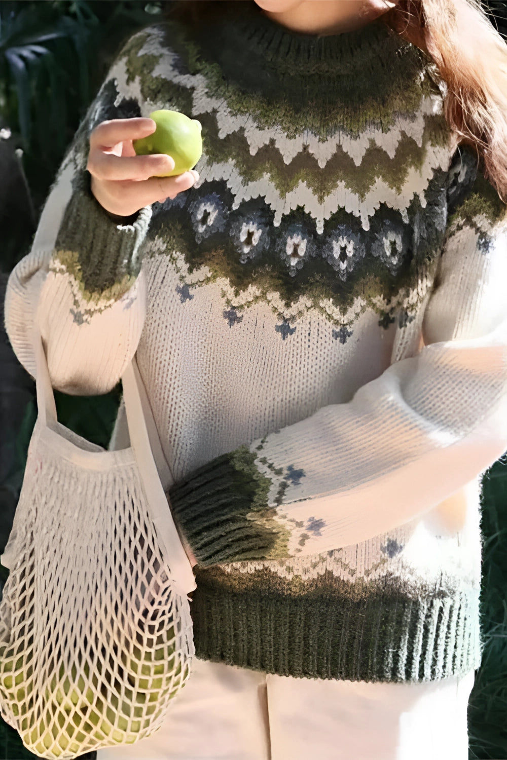 Fair Isle Women's Crew Neck Nordic Knit Sweater - Cozy Winter Fashion