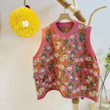 The Floral Embroidered Knit Vest is a women's sleeveless sweater that combines style and comfort in a unique way. Crafted from a soft and comfortable high-quality yarn blend, this vest features intricate floral embroidery that adds a charming touch to its design. Available in a variety of colors including Pink, Green, Red, Black, Purple, Navy blue, red wine, Orange, Brown, apricot, and Beige, it offers a wide range of options to suit different tastes and preferences. The vest comes in sizes S, M, L, and XL, ensuring a perfect fit for everyone. Its attractive and elegant design is characterized by a loose fit and a round neckline, providing a flattering silhouette that is perfect for layering. Ideal for indoor settings and temperate climates, the vest is made from breathable fabric that ensures all-day comfort while maintaining a stylish and feminine appearance. Additionally, the product offers free shipping, making it an even more appealing choice for those looking to enhance their wardrobe with a versatile and fashionable piece. Whether you're dressing up for a casual outing or looking for a comfortable yet chic option for everyday wear, this floral embroidered knit vest is sure to become a favorite in your collection.