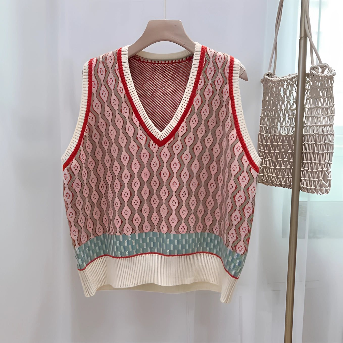 1 - Floral Embroidered Knit Vest - Women's Pink Sleeveless Sweater |