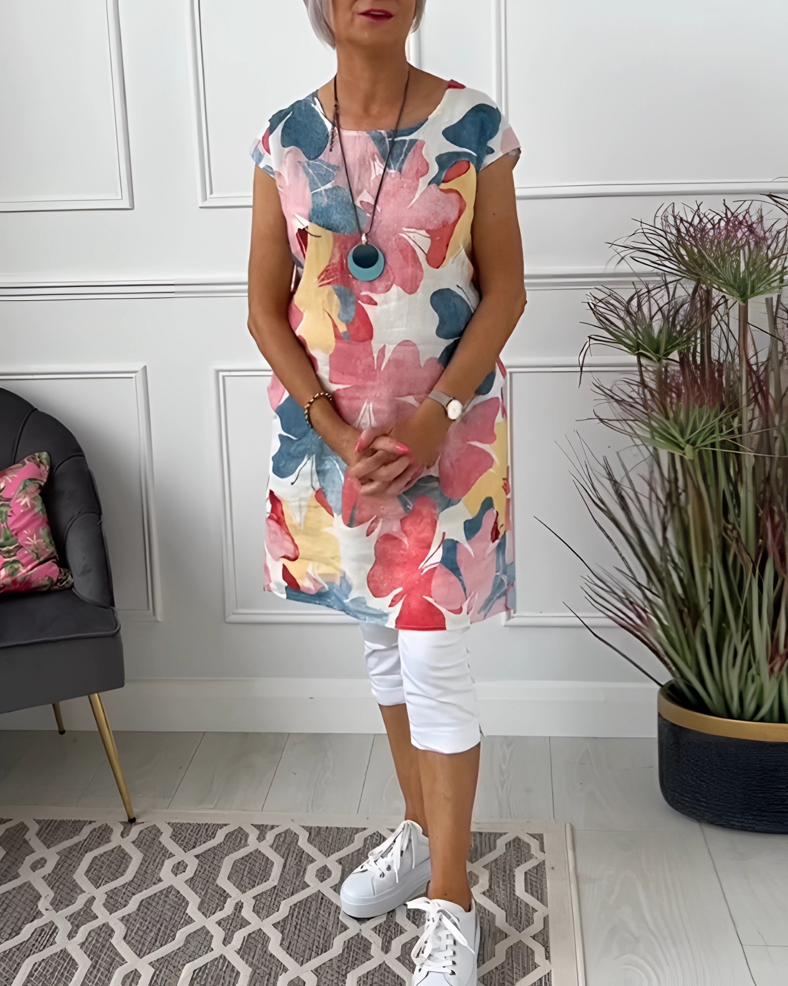 1 - Floral Print Sleeveless Summer Tunic Top for Women |