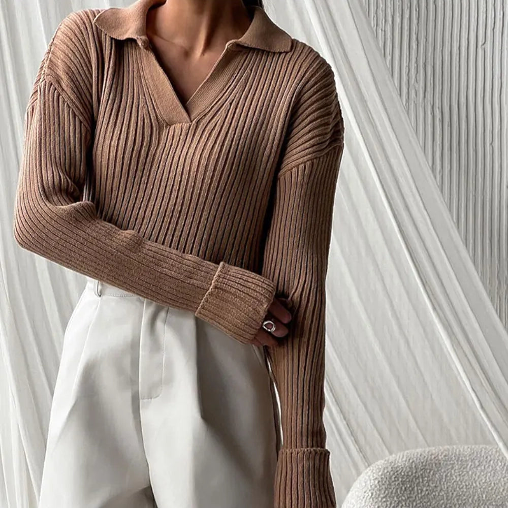 1 - Orange Ribbed Polo Collar Sweater - Women's Fall & Winter Fashion |