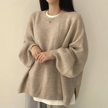 The Oversized Beige Sweater, also known as the 'Xenia' knitwear pullover, is a stylish and comfortable must-have for chilly days, perfect for enhancing any look. This cozy women's winter knitwear is available in two elegant colors, Khaki and Gray, and comes in a convenient one-size-fits-all option. The Xenia sweater is designed with a loose fit and trendy lantern sleeves, offering not only supreme comfort but also a chic accent to your outfit. Whether you're dressing for a casual day out or a relaxed evening, this pullover is incredibly versatile and adds a touch of simple elegance to your wardrobe. The soft fabric and relaxed fit ensure maximum comfort, making it an ideal choice for pairing with jeans, skirts, or leggings for a stylish look on cooler days. The wide sleeves make a fashionable statement, setting this sweater apart as a unique piece in your collection. With its understated elegance and practical design, the Xenia sweater is a perfect blend of style and comfort, making it an essential addition to your closet for the winter season.