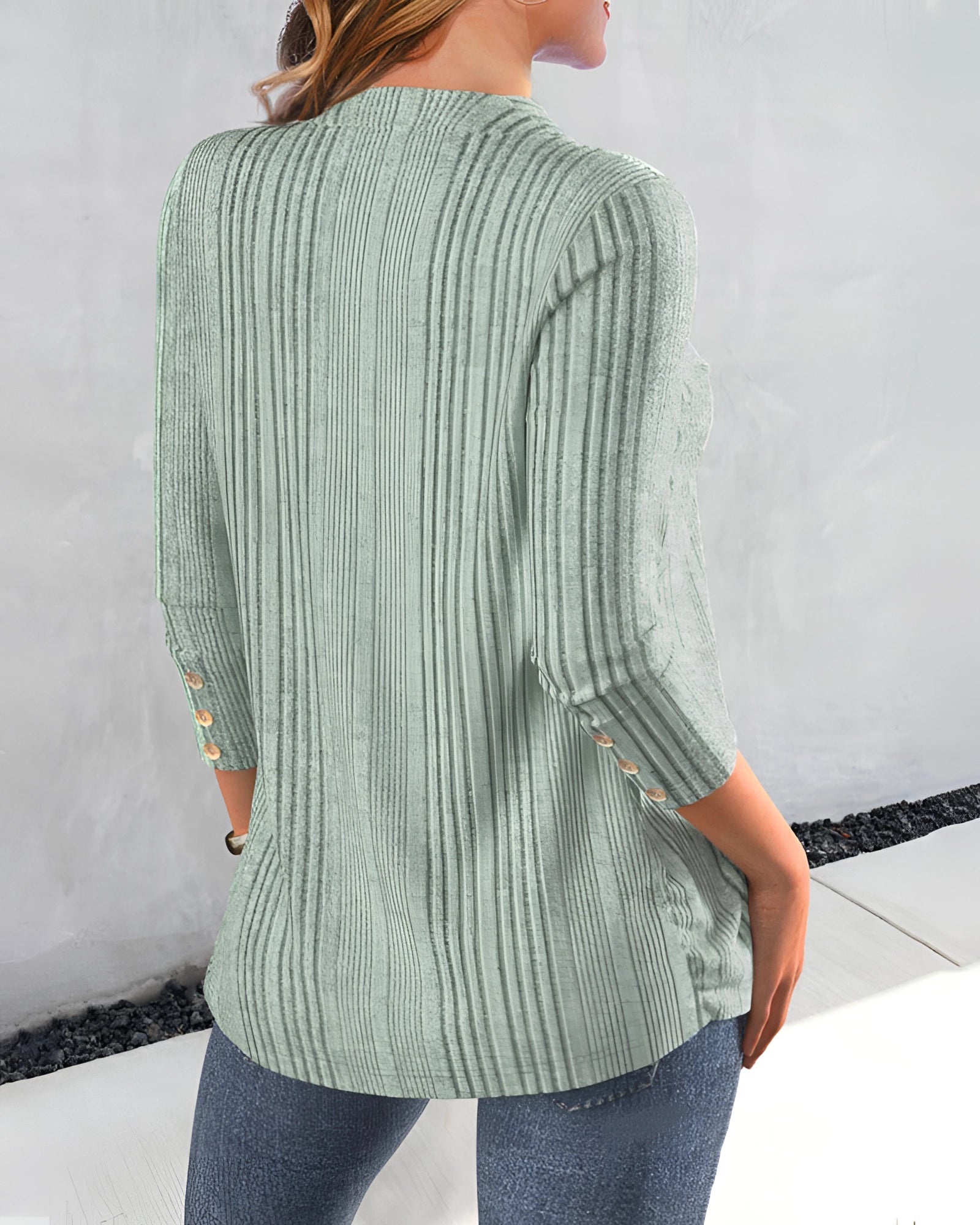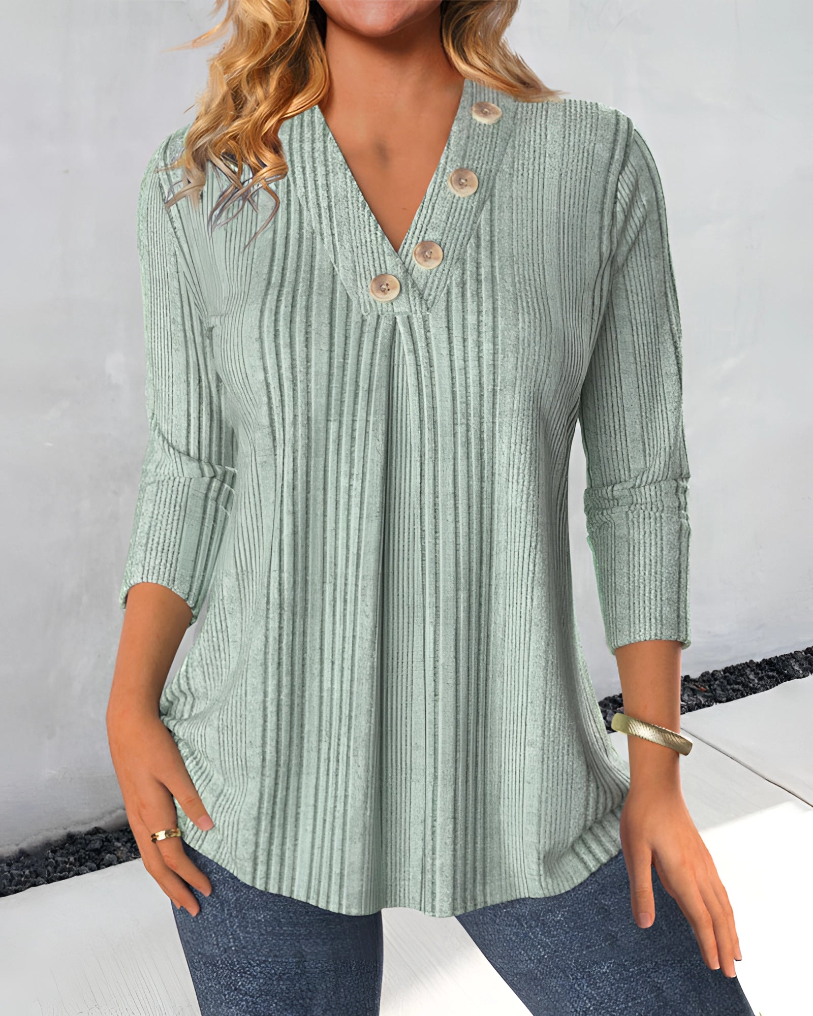 1 - Sage Green V-Neck Ribbed Blouse - Casual Lightweight Women's Top |