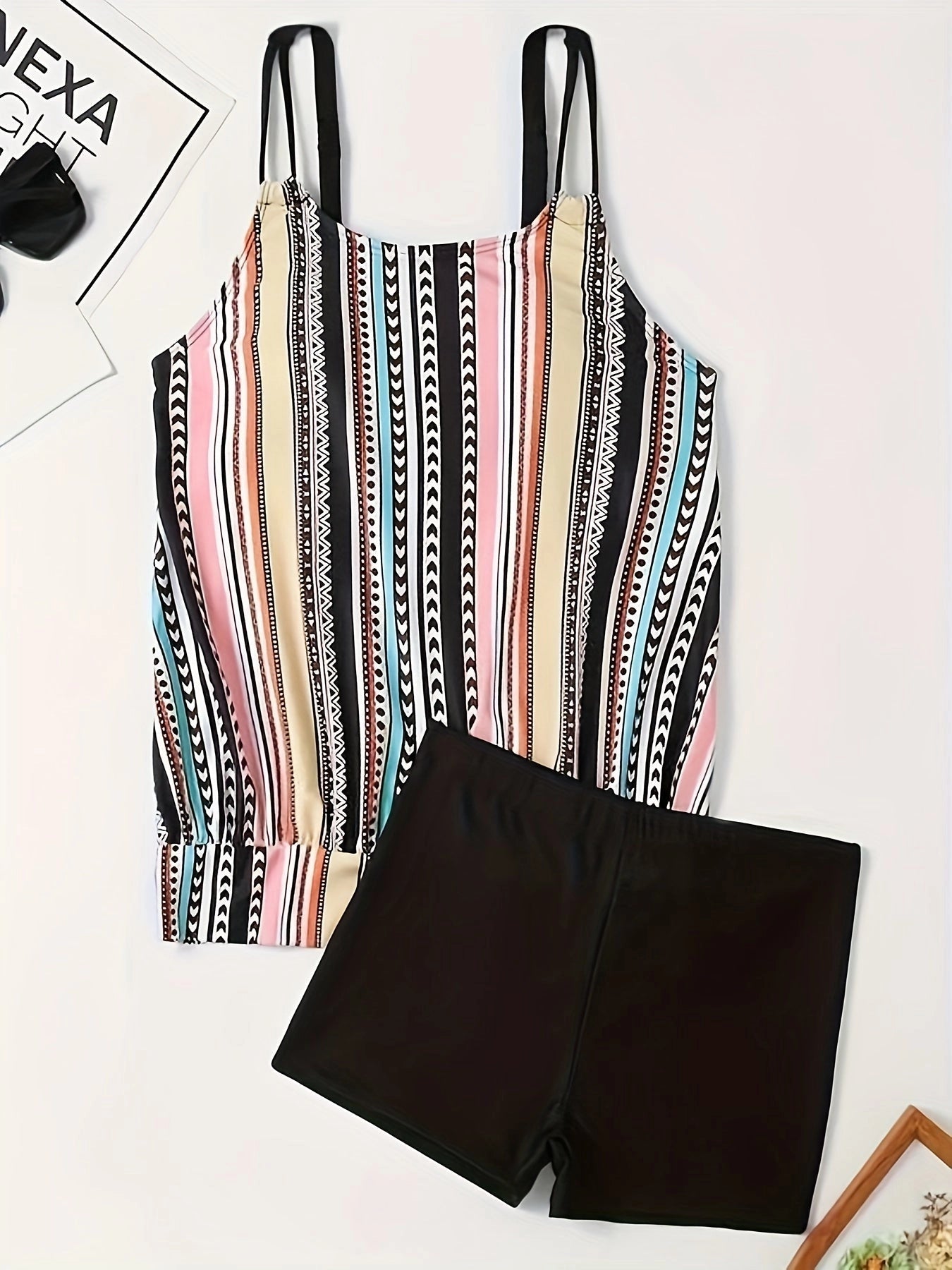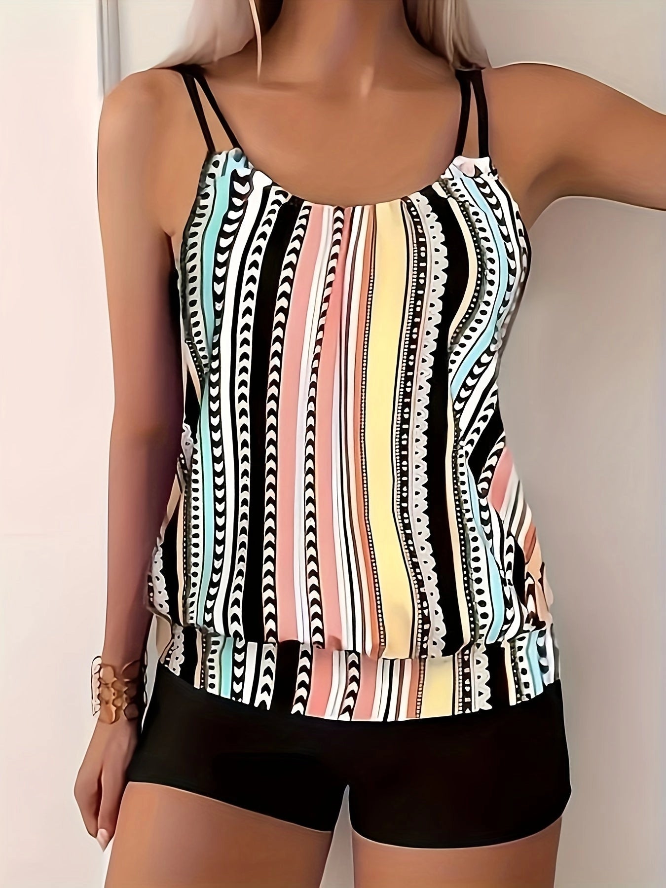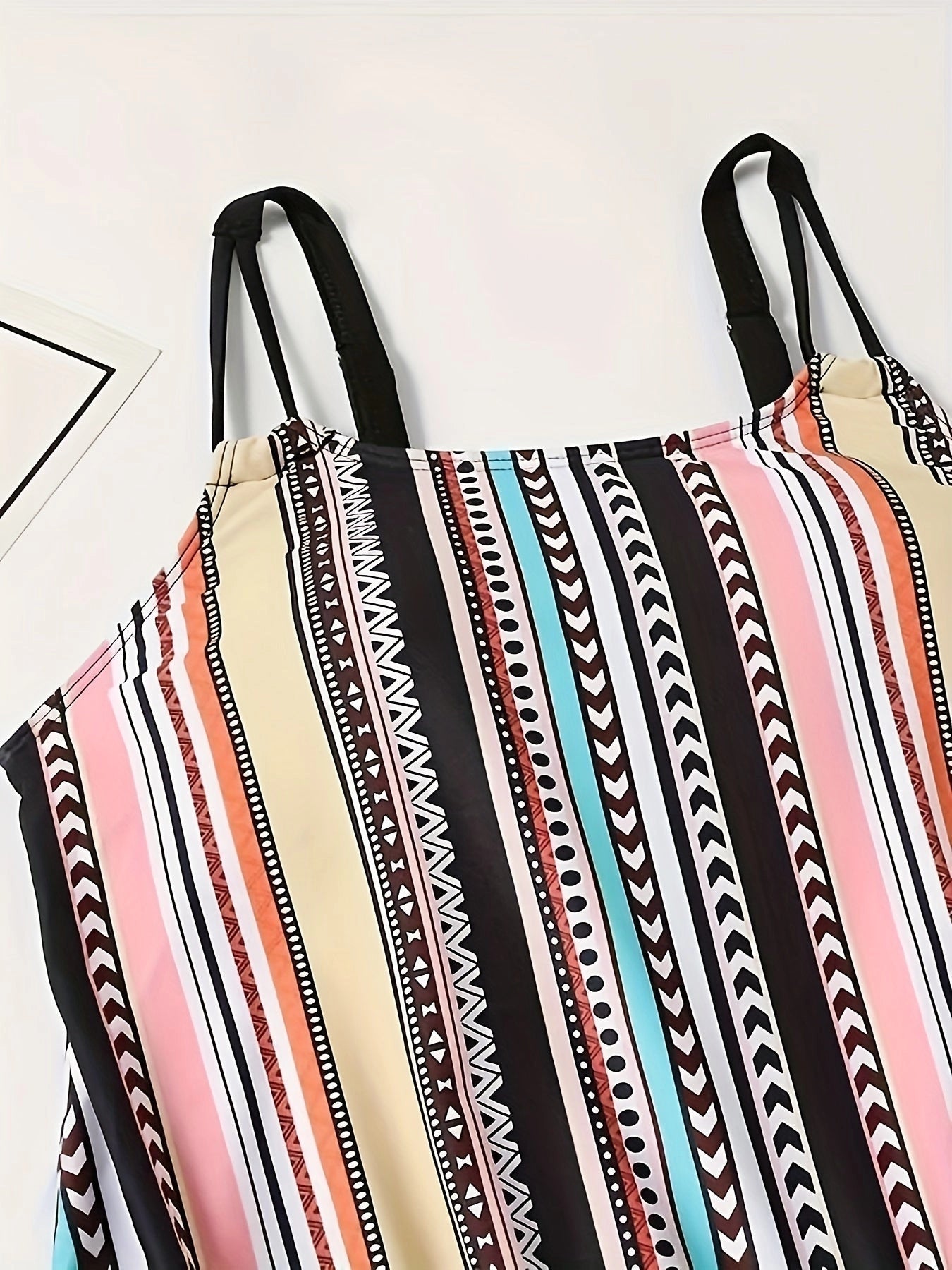 Striped Tankini Top with Adjustable Straps - Women's Summer Beachwear