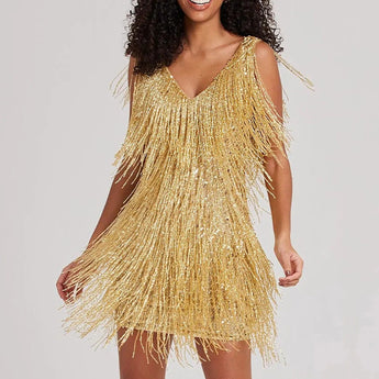 Avencea - Women's Chic Elegant Summer Party Mini Dress with Fringes