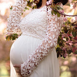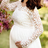 Evening Dress for Pregnant Women, Cutouts, Lace, Chiffon, Round Neck, Long Sleeves, Elegant, for the Evening, Prom