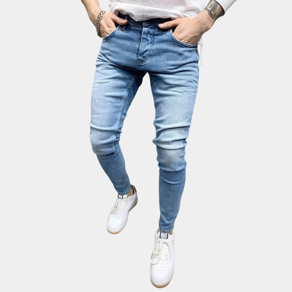 The Black Stretch Skinny Jeans for Men, featuring a slim fit and trendy urban style, are a must-have addition to your wardrobe for the spring and summer seasons. These jeans, known as the Darrell Casual skinny men's pants, boast a timeless and versatile design that makes them ideal for the warmer months. Crafted from high-quality fabric, they not only offer a cool and stylish look but also ensure exceptional comfort. The classic cut provides a comfortable fit, while decorative stitching and pockets add a touch of casual flair. The neutral color palette, available in Black, Dark blue, Gray, and Light blue, allows for effortless pairing with various tops, whether it's a casual T-shirt for a laid-back appearance or a shirt for a more polished style. The robust construction ensures durability, making these jeans a reliable companion during the warm season. Whether you're embarking on an outdoor adventure, strolling through the city, or enjoying a relaxed gathering with friends, the Darrell Casual skinny men's pants are the perfect choice for a casual yet stylish appearance in spring and summer. Show off your sense of fashion and comfort with these timeless jeans. Key features include adherence to current trends, high-quality cotton, selected designs, exceptional comfort, durability, and easy maintenance. Our trained stylists suggest that your outfit doesn't need to be monochromatic; even small, complementary details can make your ensemble stand out. Explore our shop to find the perfect pieces to complement your Darrell Casual skinny men's pants. Choose your favorite model and your regular size with ease.