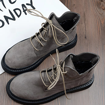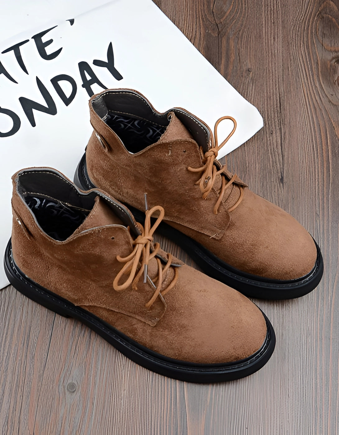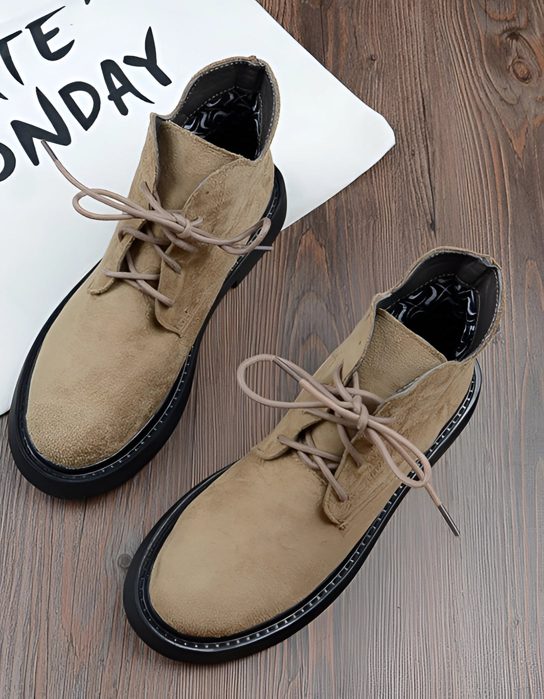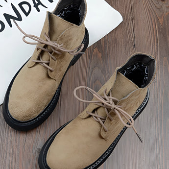 The Light-Tan Suede Men's Desert Boots are a perfect blend of elegance and comfort, designed for those who appreciate style without compromising on comfort. These casual lace-up boots feature a durable sole, making them ideal for any occasion, from casual outings to special events. The lace-up design ensures a perfect fit, while the cushioned sole provides unparalleled support, elevating your wardrobe with this versatile footwear choice. Available in a variety of colors including Gray, Khaki, Black, Gray plush, Khaki colored plush, and Black plush, these boots cater to diverse style preferences. The size options range from 35 to 40, ensuring a fit for everyone. The timeless design of these boots effortlessly complements any outfit, making them a staple in any wardrobe. The exceptional comfort is achieved through padded soles and a secure lace-up closure, providing all-day comfort. Additionally, the durable construction of these boots is designed to withstand daily wear, ensuring longevity. Key features include a secure lace-up fit, elegant retro style, and availability in multiple sizes. These boots are not just a fashion statement but a practical choice for everyday wear, offering both style and durability.