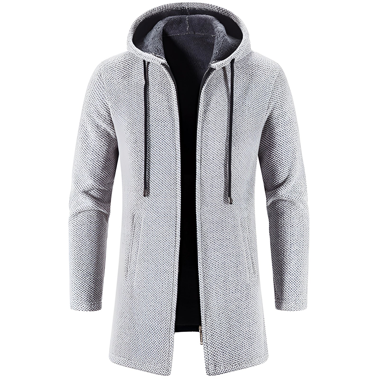 1 - Long Grey Hooded Thermal Coat - Men's Slim Fit Winter Outerwear |