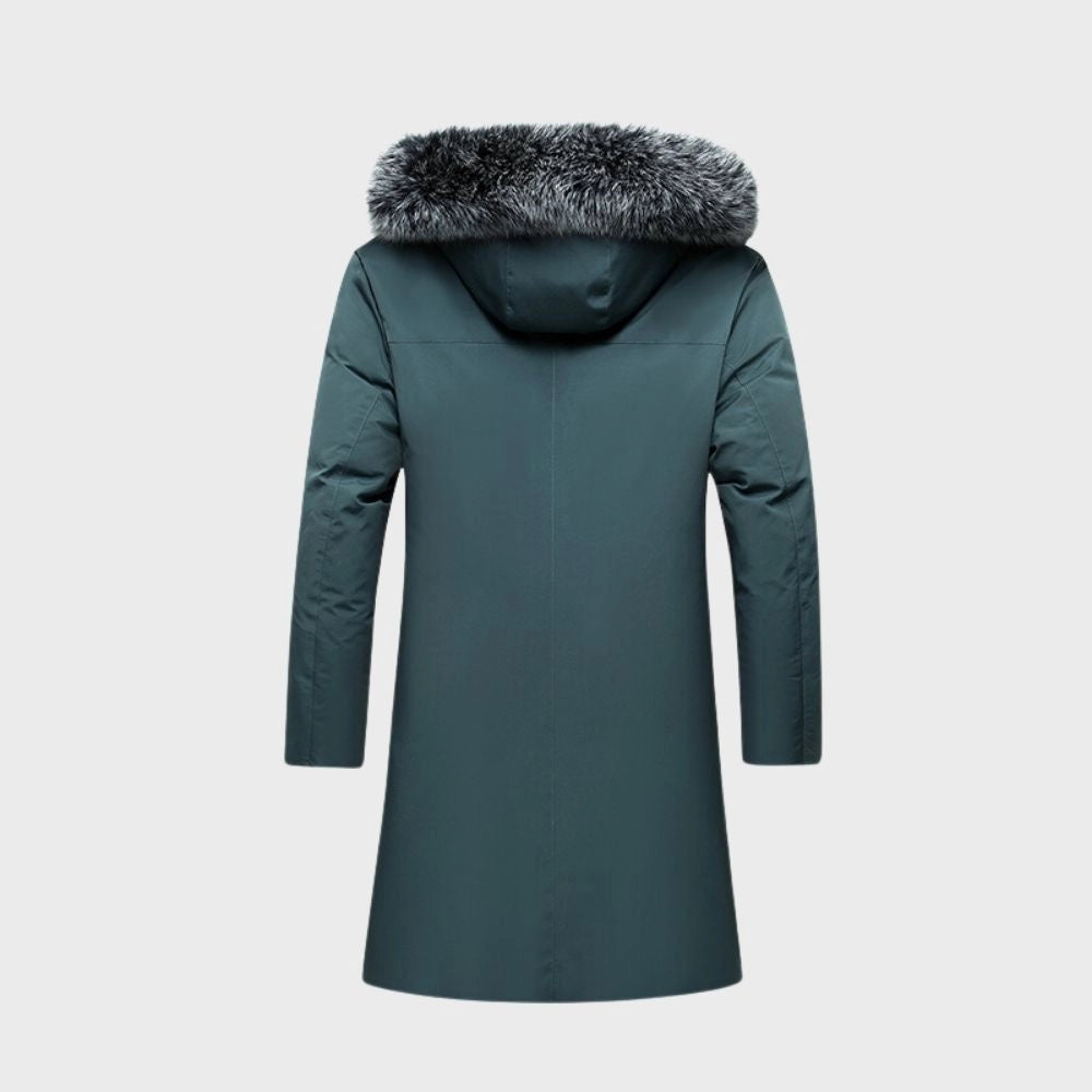 1 - Luxury Men's Dark Green Insulated Parka with Faux Fur Hood