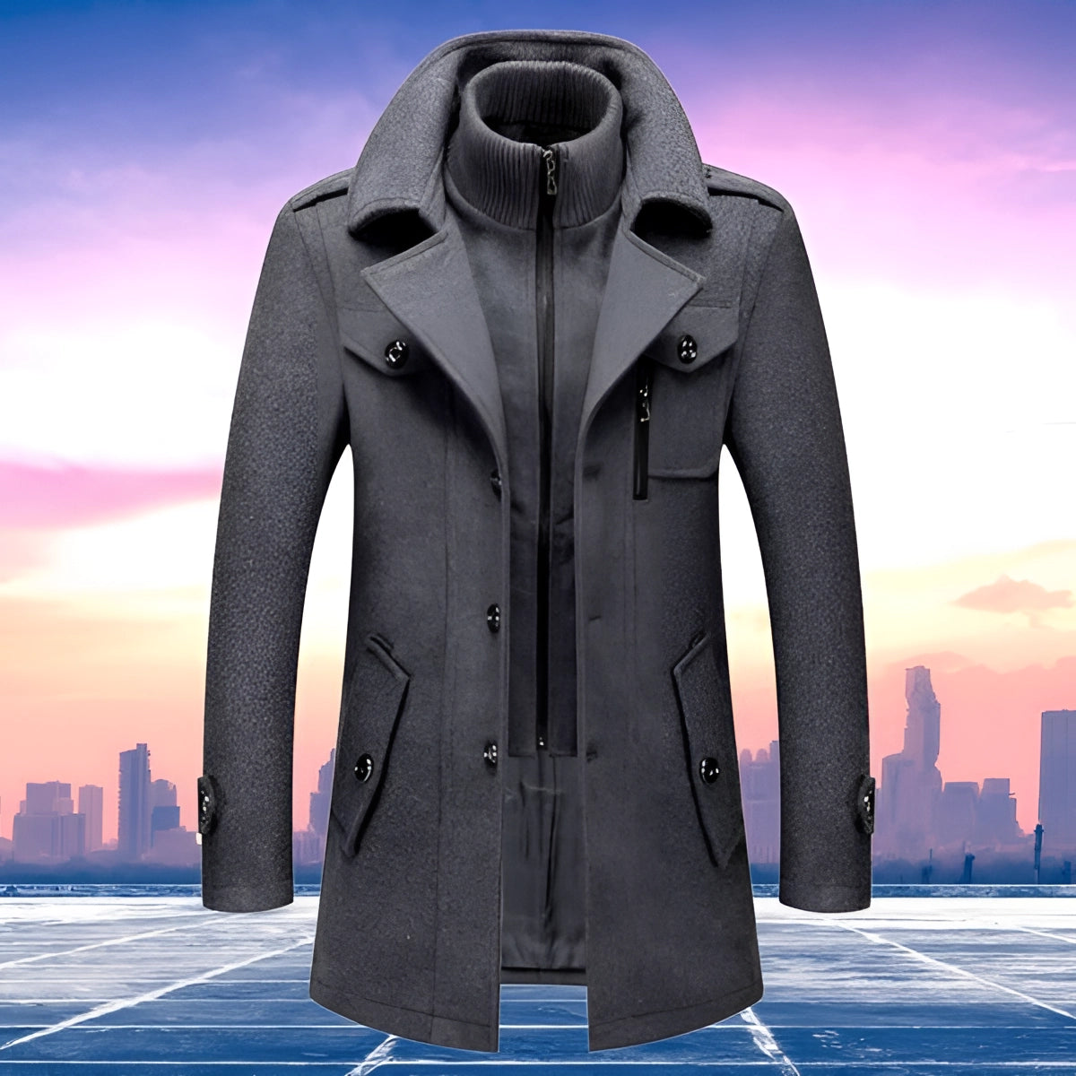 The Men's Charcoal Grey Wool Blend Tailored Winter Overcoat, also known as the DAAN winter coat, is a sophisticated and versatile addition to any man's wardrobe. Designed by Van Halen Mode, this overcoat is a perfect blend of style and warmth, making it an ideal choice for the coldest days. Available in three classic colors—Black, Khaki, and Gray—and a wide range of sizes from M to 5XL, it caters to diverse style preferences and body types. One of the standout features of this overcoat is its stylish and warm design, which ensures you remain elegant and comfortable regardless of the weather. Its versatility is another key selling point; whether you're heading to the office or planning a night out, this coat seamlessly complements any occasion, making it an indispensable item in your winter wardrobe. The tailored fit offers excellent comfort and a sleek appearance, boosting your confidence in any setting. Crafted from high-quality materials, the DAAN winter coat promises durability and retains its elegant look season after season. Practical details like convenient pockets and a streamlined closure enhance its functionality without compromising on style. To maintain its quality, follow the care instructions on the label, and consider pairing it with a classic scarf and leather gloves for a complete look. Experiment with wearing the coat open or closed for different styles, and store it on a hanger to preserve its shape. Elevate your winter fashion with the DAAN winter coat and make a statement with this refined piece from Van Halen Mode.