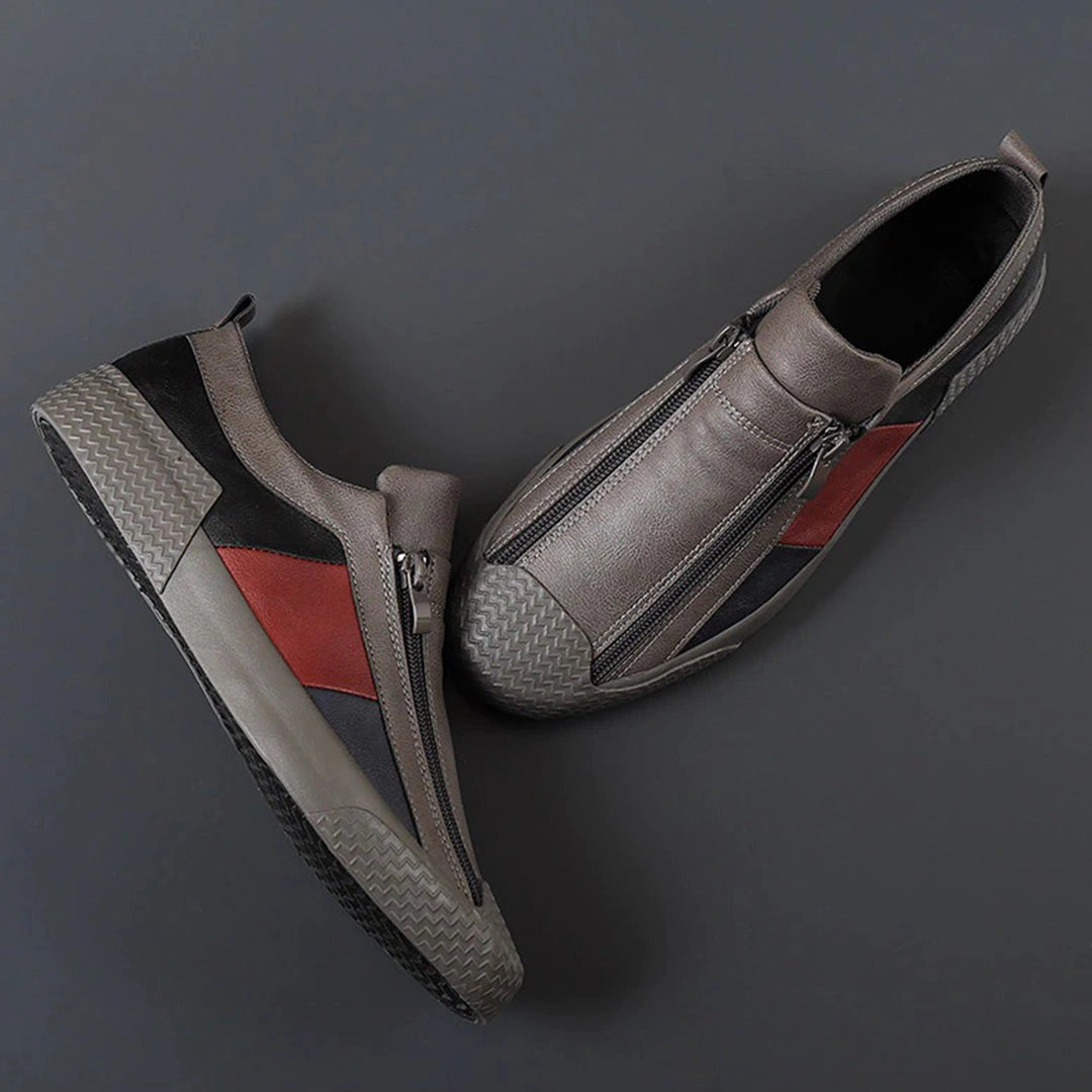1 - Men's Grey Slip-On Sneakers with Red Accents - Stylish & Comfortable