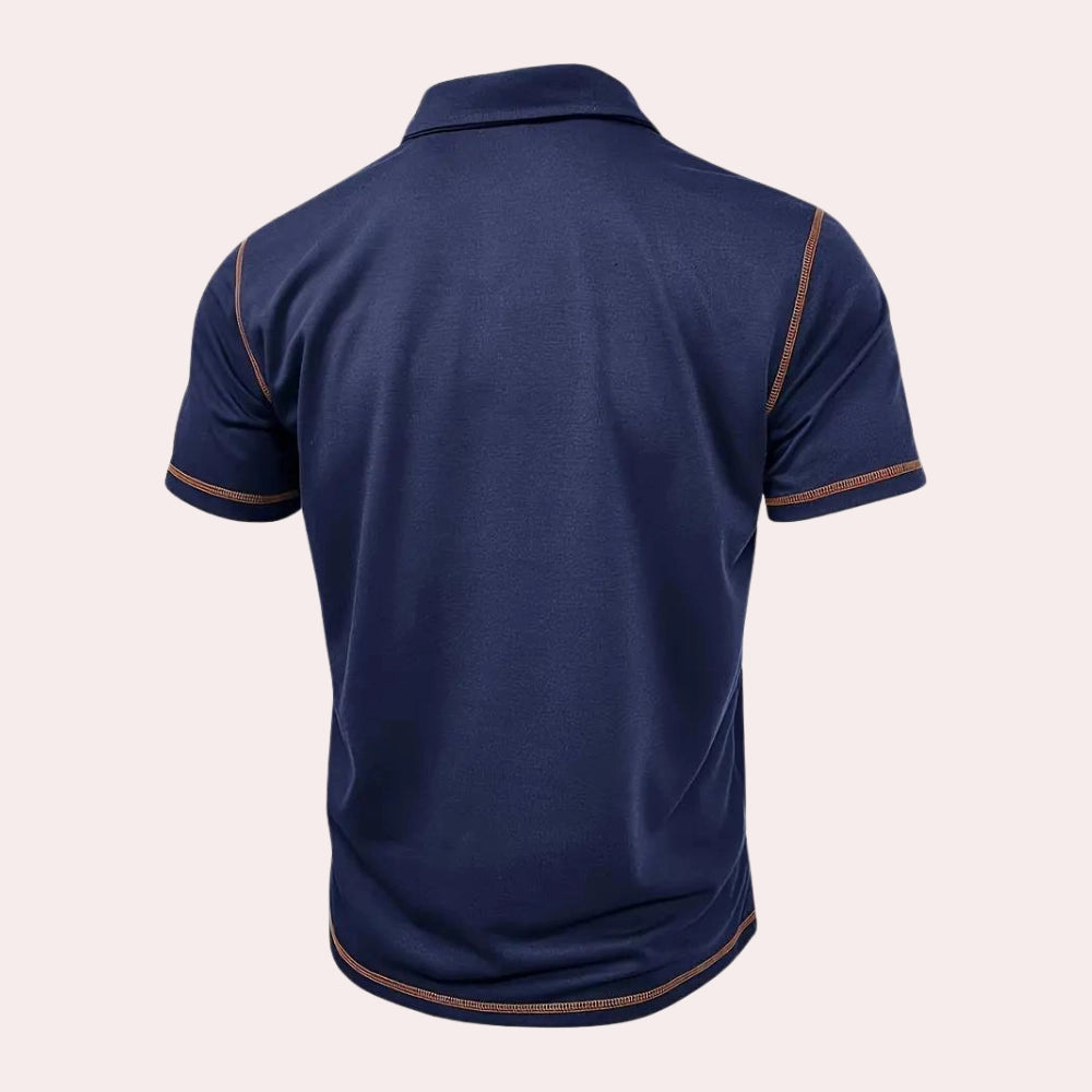 Introducing the Men's Slim-Fit Navy Blue Athletic Polo with Contrast Piping, a versatile and stylish addition to any wardrobe. This polo, known as the Valters Casual poloshirt for men, is designed to offer both comfort and style, making it perfect for both casual outings and relaxing at home. Crafted from high-quality materials, this shirt is suitable for wear in spring, autumn, and winter, ensuring you stay comfortable throughout the year. The polo is available in a range of colors including Marine blue, Khaki, and Orange, and comes in sizes S, M, L, XL, and 2XL, catering to a variety of preferences and body types. One of the standout features of this polo is its ability to be worn both during the day and in the evening, providing a seamless transition from casual daywear to a more refined evening look. Pair it with sneakers for a laid-back outing or dress it up for a more polished appearance. The contrast piping adds a touch of sophistication, enhancing the overall aesthetic of the shirt. With its rugged yet refined look, the Valters Casual poloshirt allows you to create a masculine and sophisticated appearance effortlessly. Whether you're heading out for a casual day or an evening event, this polo is designed to keep you looking sharp and feeling comfortable.