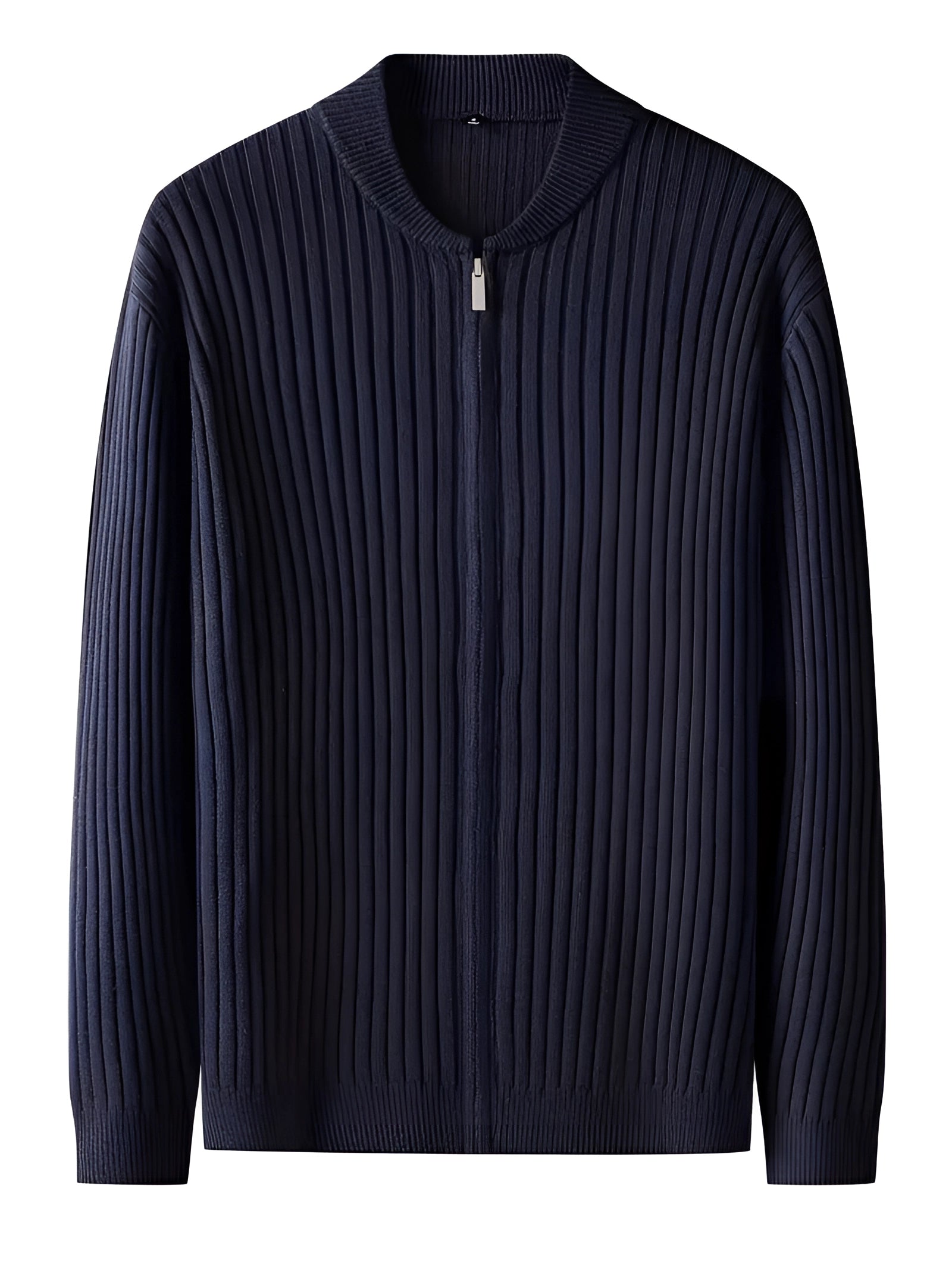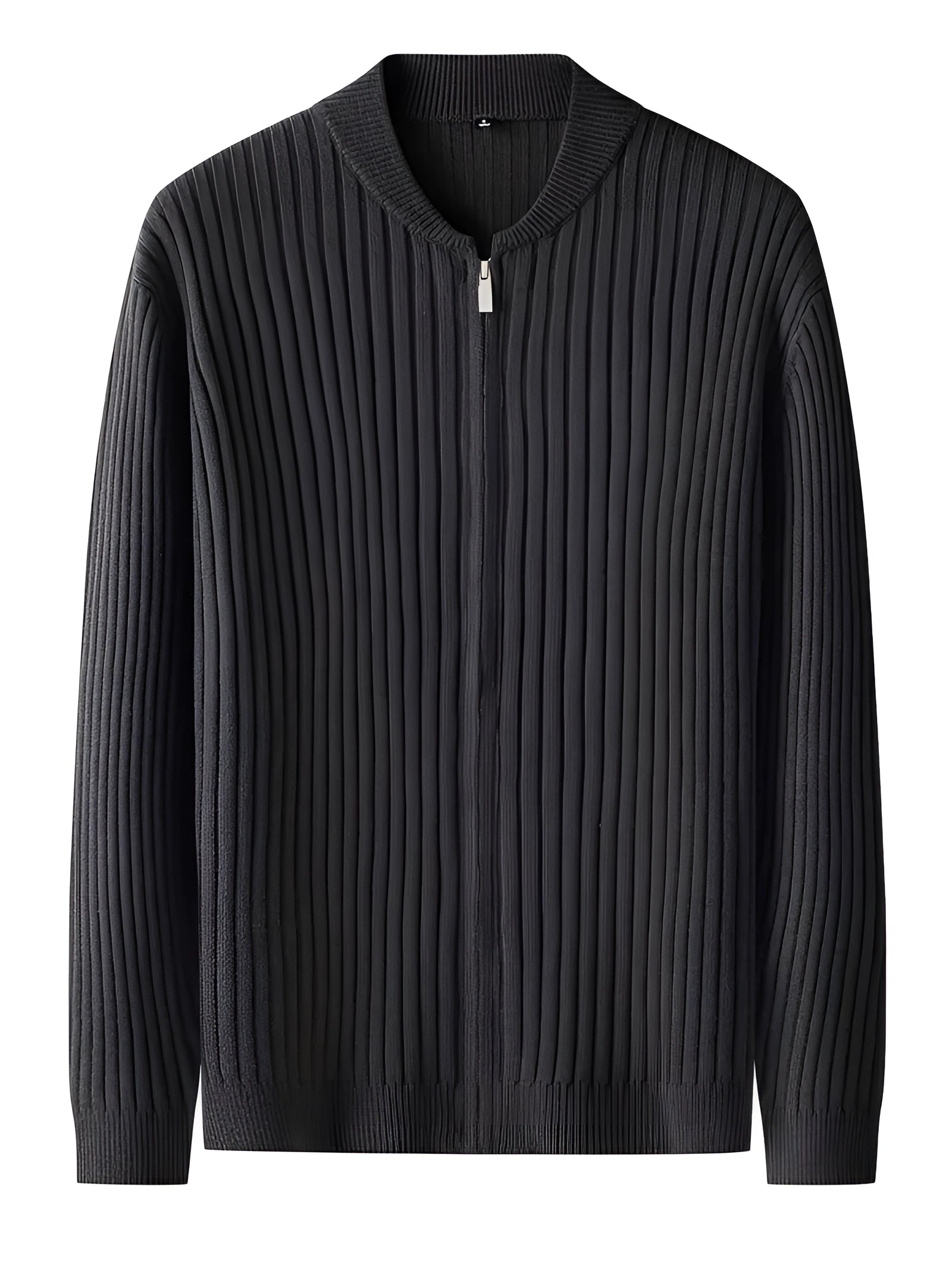The Men's Tan Ribbed Knit Zip-Front Cardigan is a lightweight casual sweater designed for both comfort and style. Available in three versatile colors—Khaki, Black, and Navy Blue—this cardigan is crafted from soft, breathable cotton, making it perfect for chilly winter days. The classic round neck and long sleeves provide a timeless look that pairs effortlessly with any outfit, while the regular fit allows for easy layering without compromising on a sleek silhouette. This cardigan is available in a wide range of sizes from XS to 2XL, ensuring a perfect fit for everyone. Whether you're lounging at home or heading out for a casual outing, this plain-patterned cardigan is a versatile staple for your winter wardrobe. Its zip-front design adds a modern touch, making it not only functional but also stylish. The ribbed knit texture adds an extra layer of sophistication, making this cardigan a must-have for any fashion-conscious individual.