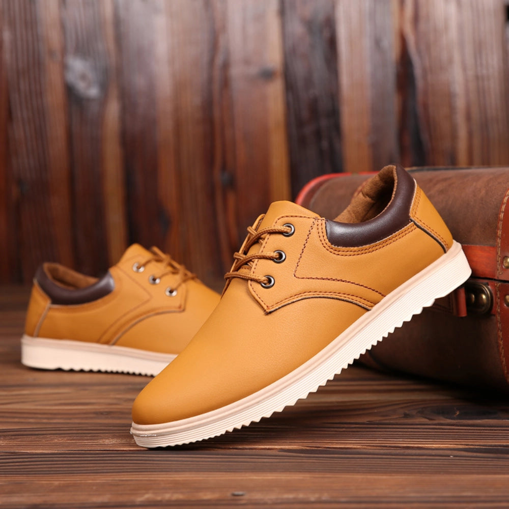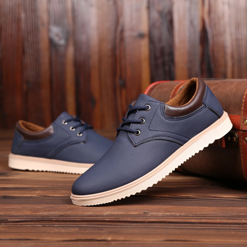 The Navy Blue Men's Low-Top Leather Sneakers are a perfect blend of style and durability, designed to cater to the modern man's footwear needs. These sneakers, part of the Alden collection, are crafted from premium leather, ensuring a polished appearance and unmatched durability. The timeless Oxford silhouette makes them suitable for both formal and casual occasions, adding versatility to any wardrobe. Available in three colors - Black, Blue, and Yellow - and a range of sizes from 39 to 44, these sneakers offer options to suit various preferences and fits. One of the standout features of these sneakers is their versatility; they seamlessly transition from casual to formal settings, pairing effortlessly with different outfits. Comfort is another key selling point, as they are constructed with materials that provide a comfortable and supportive fit, making them ideal for all-day wear. Durability is assured with the use of high-quality materials that guarantee longevity and weather resistance, ensuring these sneakers withstand the test of time. Additionally, practical details such as sturdy soles and reliable fastenings make them functional for everyday use. These sneakers are not just a fashion statement but a practical choice for those seeking a combination of style, comfort, and durability in their footwear.