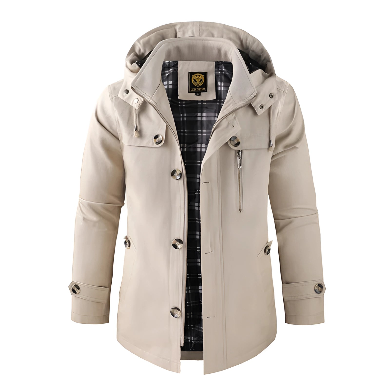 1 - Beige Men's Hooded Windproof Jacket - Lightweight, Modern, Tailored Fit |