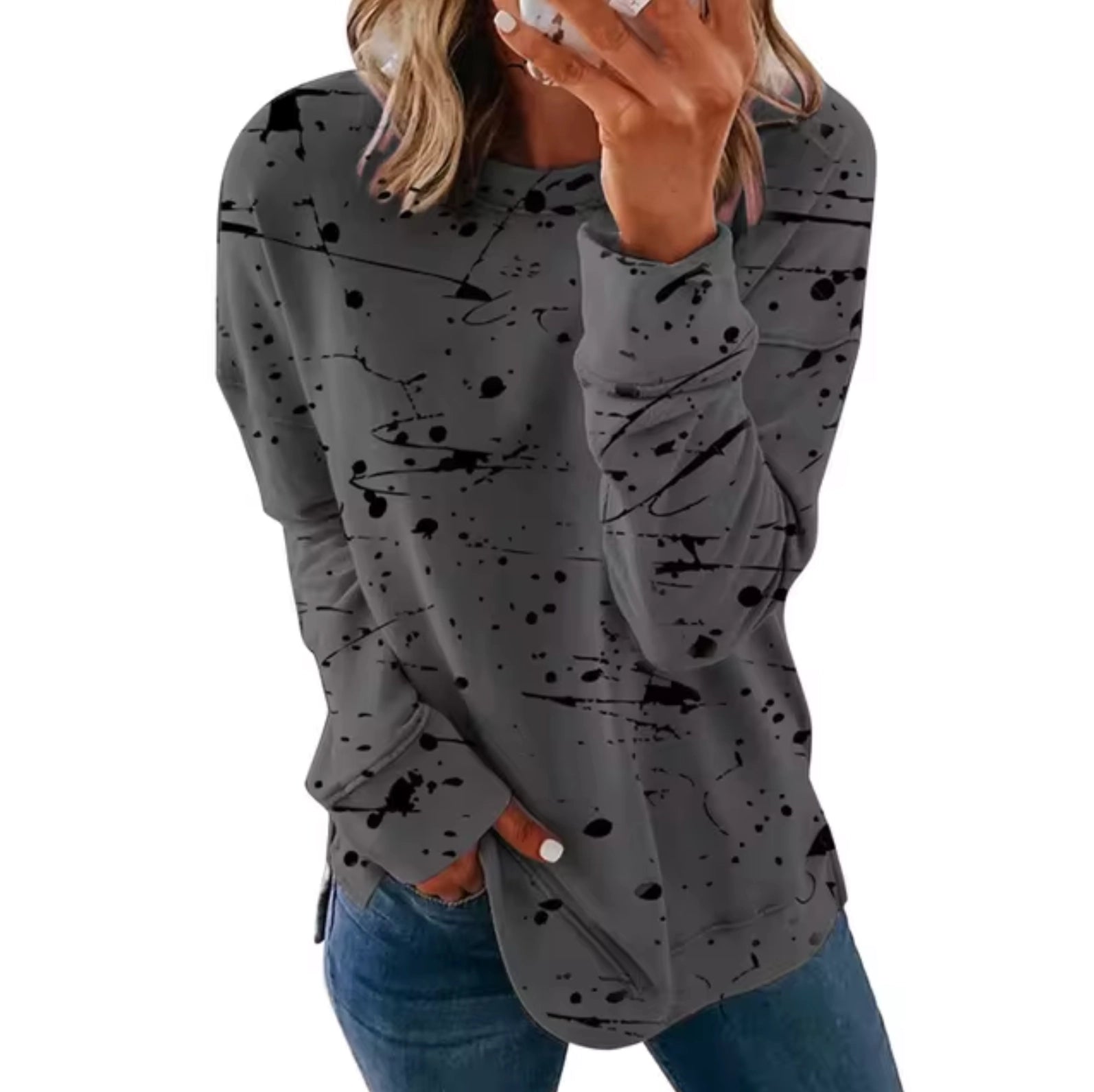 The Abstract Ink Splash Long Sleeve Women's Blouse is a standout piece in fall fashion, offering a unique blend of style and comfort. Crafted from a soft and breathable cotton blend, this blouse ensures a pleasant feel against the skin, making it perfect for everyday wear. Its loose and oversized fit provides a comfortable and relaxed streetwear-inspired look, ideal for those who appreciate both fashion and ease. Available in a variety of colors including White, Black, Light gray, Dark gray, Military green, Pink, Red, and Navy blue, this blouse caters to diverse style preferences. The long sleeves make it an excellent choice for spring, serving as a light layer that can be worn alone in dry weather. The modern tie-dye print adds a splash of color and personality to any outfit, making it a versatile addition to any wardrobe. With sizes ranging from S to 5XL, this blouse accommodates a wide range of body types, ensuring a flattering fit for everyone. Additionally, the blouse comes with the benefit of free shipping, enhancing its appeal as a must-have item for the season. Whether you're dressing up for a casual day out or looking for a comfortable yet stylish top, the Abstract Ink Splash Long Sleeve Women's Blouse is a perfect choice.