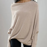 The minimalist design of this oversized sweater is simple yet captivating. You can style this distinctive piece as a chic turtleneck draped over the shoulder or wear it off the shoulder to suit your diverse fashion needs. The swing collar design adds a touch of elegance, showcasing your neckline beautifully. It can be worn off the shoulders to frame your face and elongate your neck, exuding a stylish and charming aura. The long hem effectively conceals the waist and hips, while the fabric draping effortlessly delivers a casual, vibrant look.