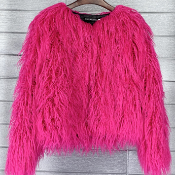 With its lively design and cozy fabrics, this coat is not just a stunning piece; it's also the ideal companion for cooler days. The premium faux fur fibers provide a luxurious appearance and comfort.