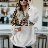 Avencea – Casual, Solid Color Plush Hoodie with Pocket and Leopard Print