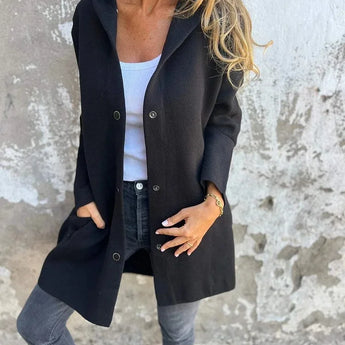 Chic Design: The Avencea Hooded Coat merges a minimalist style with a relaxed fit, perfect for daily wear and special occasions.