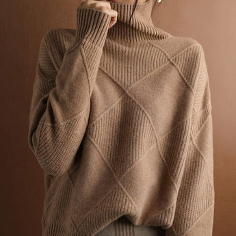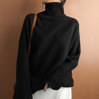 Carefully crafted from high-quality materials, this turtleneck sweater provides not only style but also exceptional comfort. The ribbed design at the neck, cuffs, and hem ensures a cozy fit that wards off the chill and promotes warmth. The sweater is designed for a relaxed fit, allowing for easy layering over a shirt or under a winter coat.