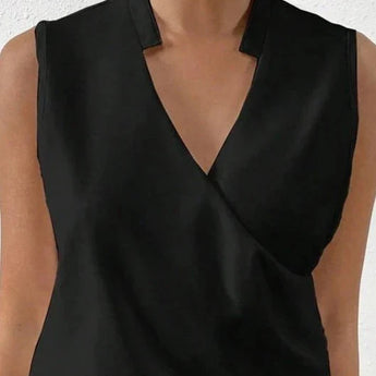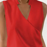 The elegant cross V-neck adds a touch of sophistication to your look, while the sleeveless design keeps you cool during the summer heat. Whether for work, school, shopping, or everyday wear, this blouse is versatile and ideal for any occasion.