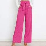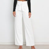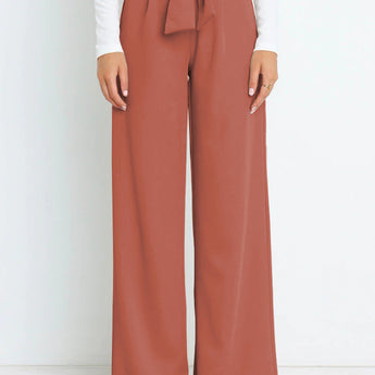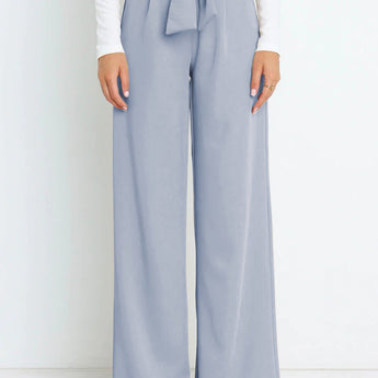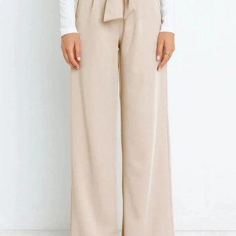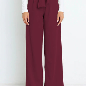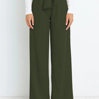 Avencea introduces a fresh and trendy collection of straight-leg trousers that provide a stunning appearance and exceptional comfort throughout the day, thanks to the premium materials used in crafting this stylish piece. The gathered, wide waistband with a tie detail enhances the overall look of these trousers.
