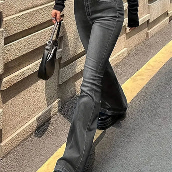 Introducing the Avencea Jeans with flared legs, designed to give the illusion of endlessly long legs! 🔥 Featuring a high-waist design and stretchy fabric, these jeans fit perfectly and offer a stylish retro flare. They are ideal for pairing with crop tops, blouses, or a cozy sweater—making them your new go-to for a leg-lengthening, figure-flattering look. 👖