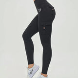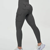 Embrace style and comfort with these high-waisted, solid-colored cargo leggings from Avencea! Featuring a soft, skin-friendly fabric that retains warmth and offers high elasticity, you're ready for any adventure.